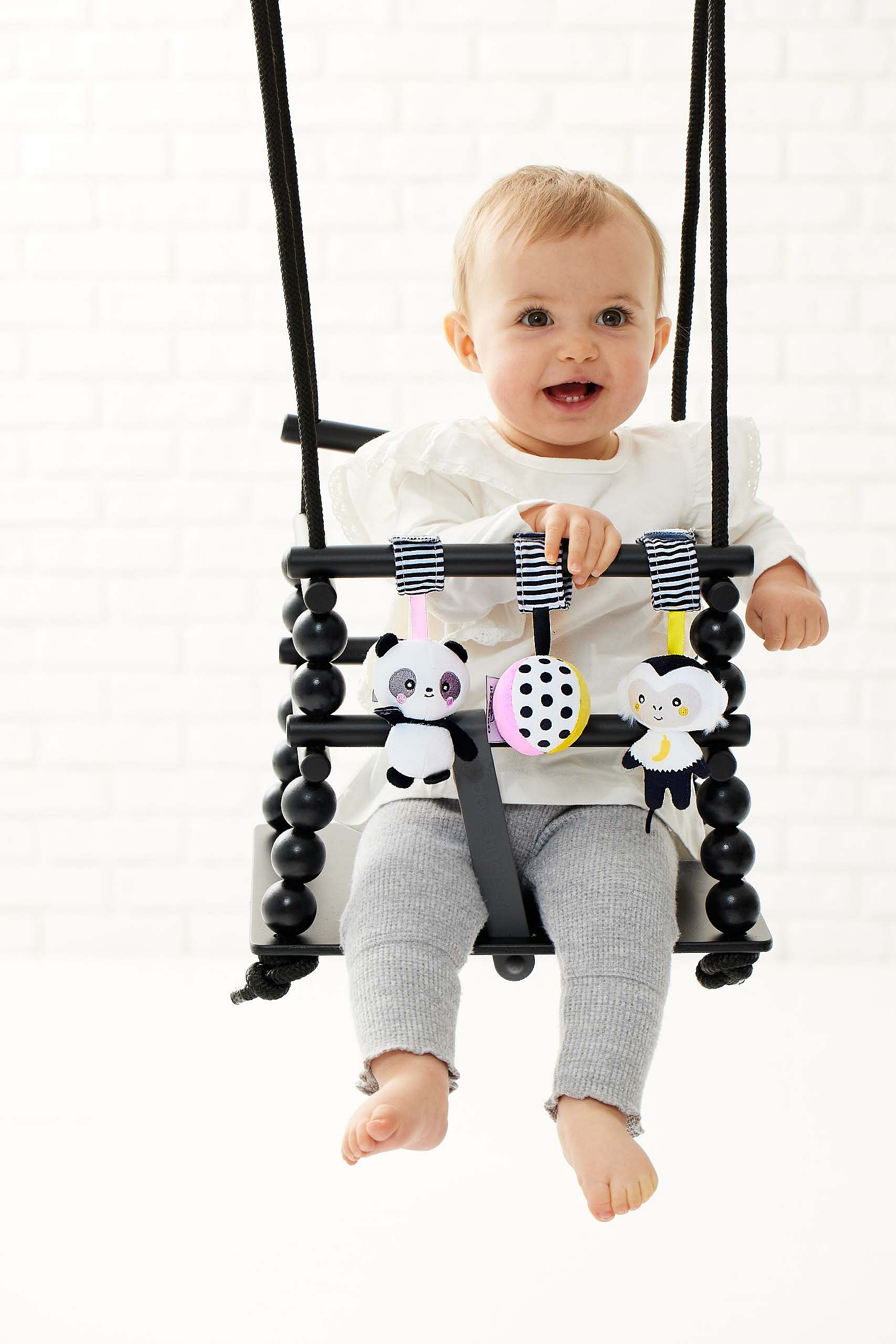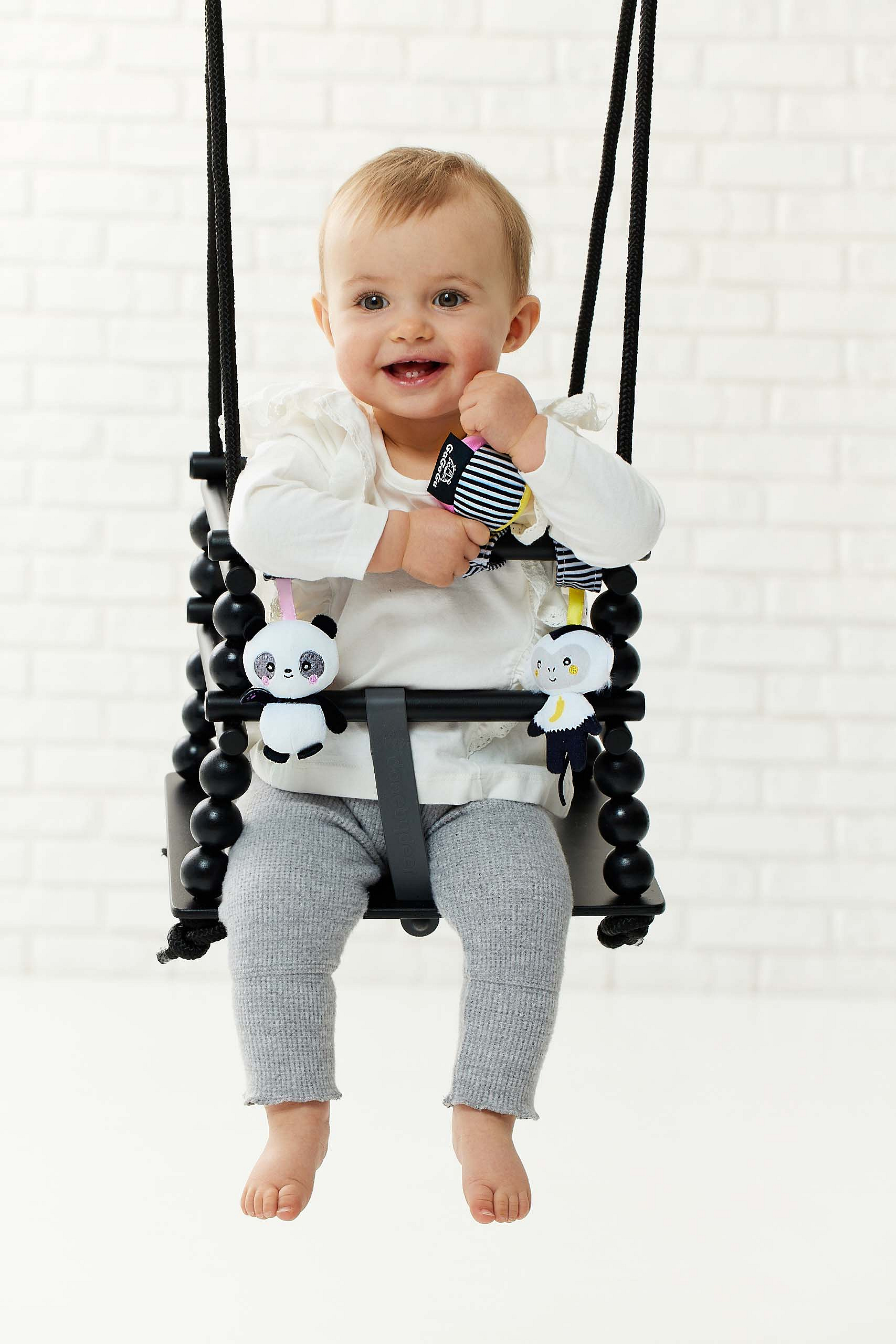 Závěsná plyšová hračka GaGaGu má kontrastní barvy a vzory, které stimulují zrak dítěte. Plyšové prvky - opice, panda a míč - a stuhy vybízejí děti, aby je uchopily a podpořily tzv. jemnou motoriku (pohyby prstů a rukou) a učení motorické koordinace. Pohodlný způsob zapínání na suchý zip (příjemný na dotek a snadné zapínání) vám umožní přívěsek připevnit kamkoli, například na kočárek, na postýlku, na houpačku nebo autosedačku. Hračka je velmi lehká a šikovná, snadno skladná, ideální na procházku nebo výlet. Je určen pro děti ve věku 0m + a je jedním z 12 produktů dostupných pod značkou GaGaGu. Kromě přívěsků i chrastítka, spirála, kniha, smyslové kostky a smyslová podložka. Všechny hračky GaGaGu lze vzájemně kombinovat.Informace o produktu (v bodech):• kontrastní barvy a vzory – stimulují zrak dítěte• plyšové prvky - opice, panda a míč