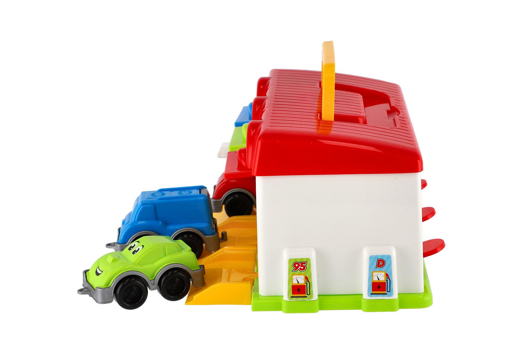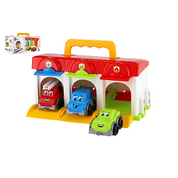 Popis Garáž s autíčky 3ks + doplňky plast v krabici 27x14x15cm