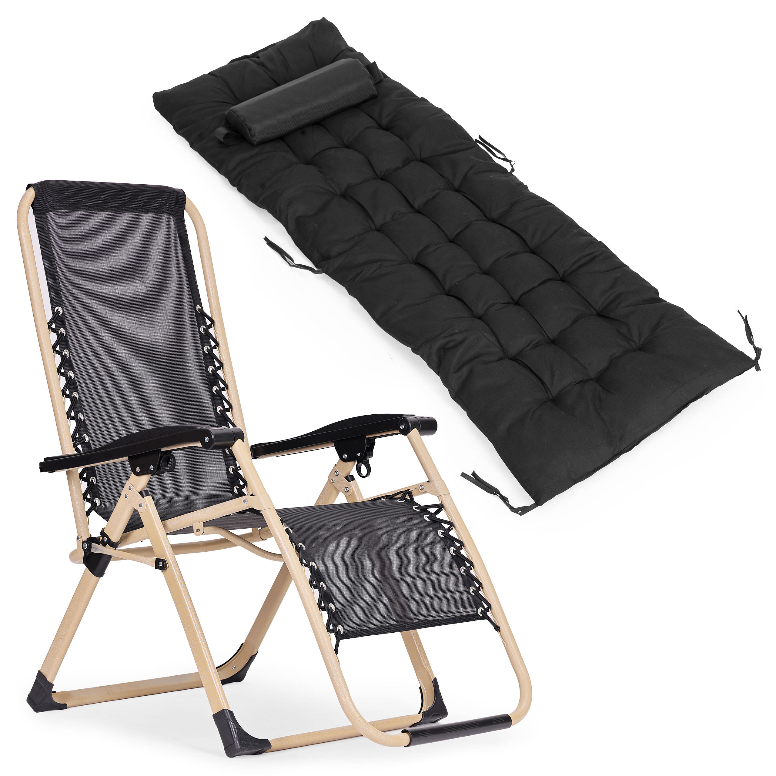 Nothing improves your mood like a moment of relaxation in the fresh air – with a book, in the sunshine, or during a short nap after a busy day. The lounger creates a comfortable place to spend time in the garden, on the terrace, balcony, or during trips by the water. Its stable construction is made of powder-coated steel, ensuring durability and resistance to rust. The seat and backrest are made of breathable polyester mesh coated with PVC. This durable material adapts to the body for greater comfort, is moisture-resistant, and dries quickly, making the lounger perfect for summer outdoor relaxation. For full comfort, the set includes a soft, comfortable cushion covering both the seat and backrest, making time spent on the lounger even more enjoyable.