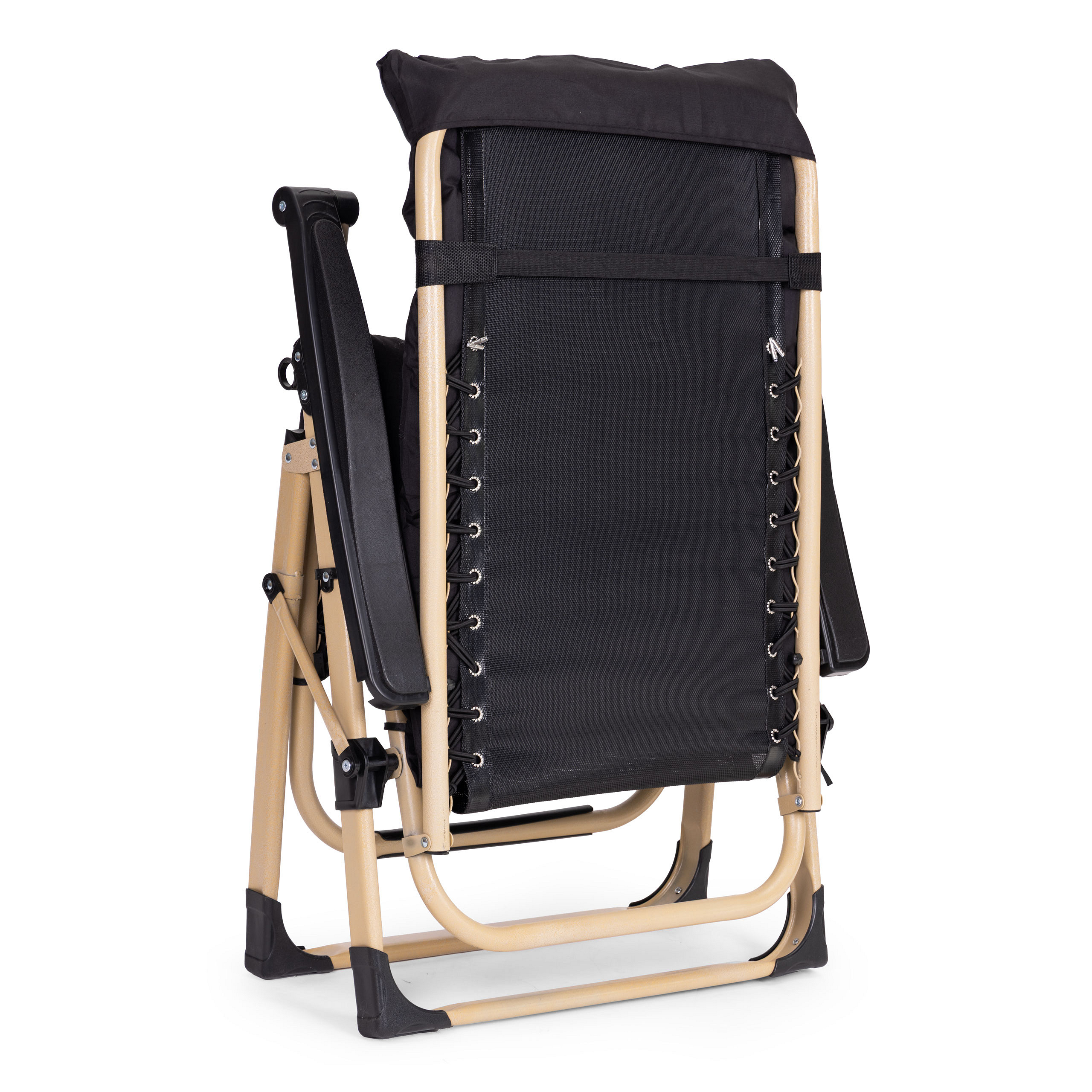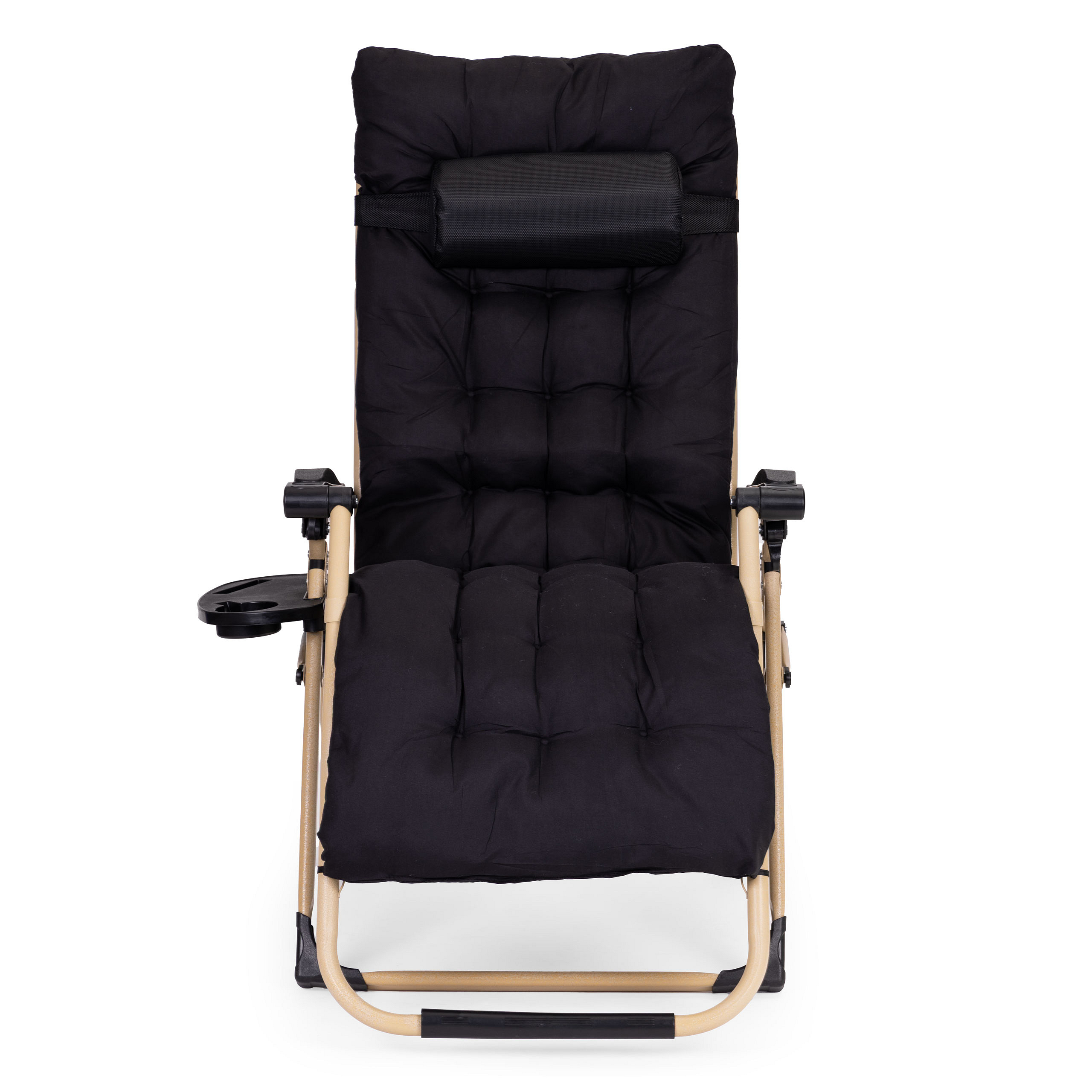 The lounger comes with a headrest and a large soft quilted cushion that covers both the seat and the backrest, ensuring high comfort while relaxing. Thanks to it, the lounger becomes even more comfortable, allowing you to fully relax and enjoy your rest. The cushion is made from weather-resistant material. It also features durable straps for attaching to the lounger frame and a special flap that slides over the upper part of the backrest to prevent shifting during use.