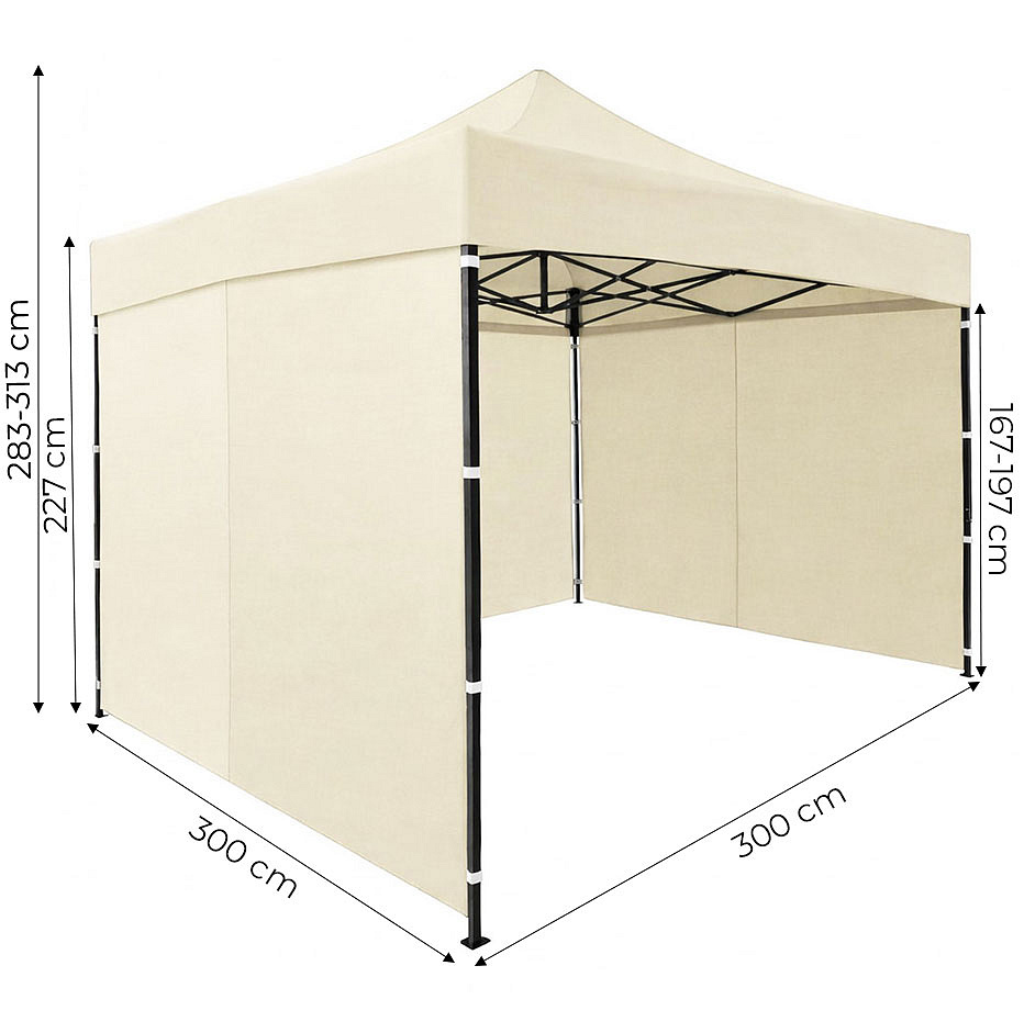 • 4-level height adjustment allows easy adaptation of the pavilion to different needs and surroundings. The simple system lets you increase internal space or adjust the height depending on the event, ensuring comfort and functionality. Adjustment range: 283/293/303/313 cm.