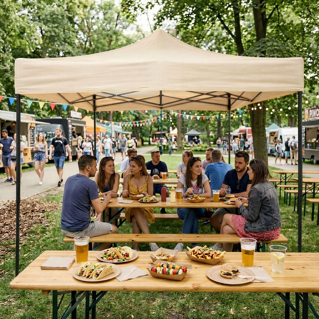 Automatically unfolding construction significantly simplifies preparing the pavilion for use. The quick setup system allows the tent to be assembled without complicated installation, which is especially useful during outdoor events, fairs, or garden gatherings. The steel frame ensures stability, and the setup process involves extending the legs – the structure unfolds automatically, allowing you to prepare a covered space in a short time. The steel is powder-coated to protect against corrosion.