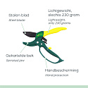 Kromě toho design zahradnických nůžek poskytuje koncentrovanou sílu v malém úhlu, což vede k přesnému a snadnému řezu. Bezpečnost je při návrhu zahradnických nůžek na prvním místě. Rukojeť je vybavena ochranou ruky, aby se minimalizovalo riziko zranění. Navíc jsou zahradnické nůžky vyrobeny z hliníku, což znamená, že váží pouze 230 gramů a jsou snadno ovladatelné.