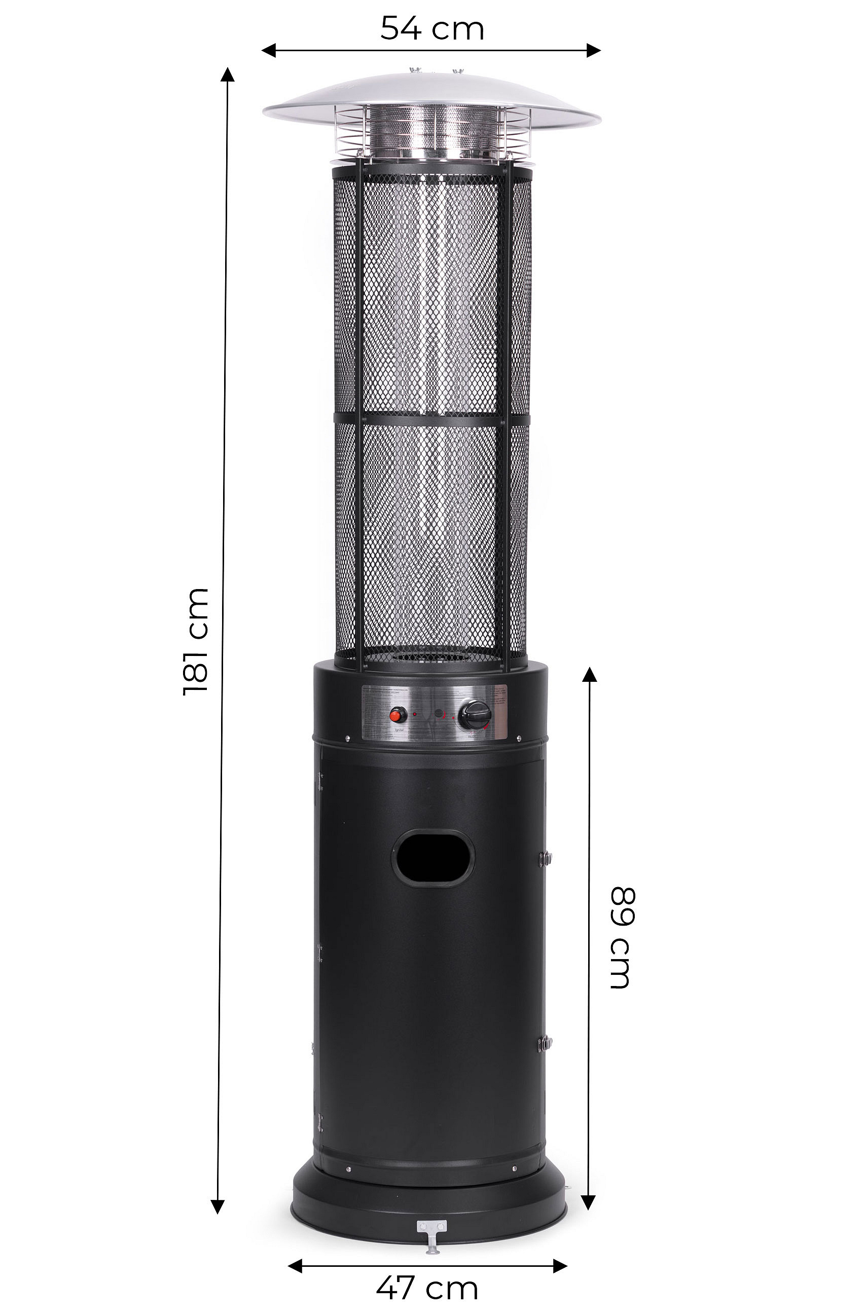 Temperature control is a key feature that allows full adjustment of heating power. The smooth adjustment enables easy adaptation to changing weather conditions. The built-in control panel allows intuitive temperature setting, ensuring optimal user comfort. With an electronic ignition system, the heater is easily ignited by pressing a red button on the panel (powered by a 1.5V AAA battery, included). The heater is both effective and energy-efficient, allowing for long-lasting use without excessive gas consumption.