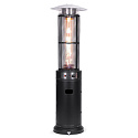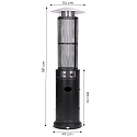 The heater features a striking high-flame burning effect that creates an inviting ambiance. The elongated glass shield not only enhances safety by protecting the flame from wind but also adds an elegant touch. Its simple, tall structure allows the flame to be visible from all angles, providing even heat distribution and warming the surrounding space efficiently.