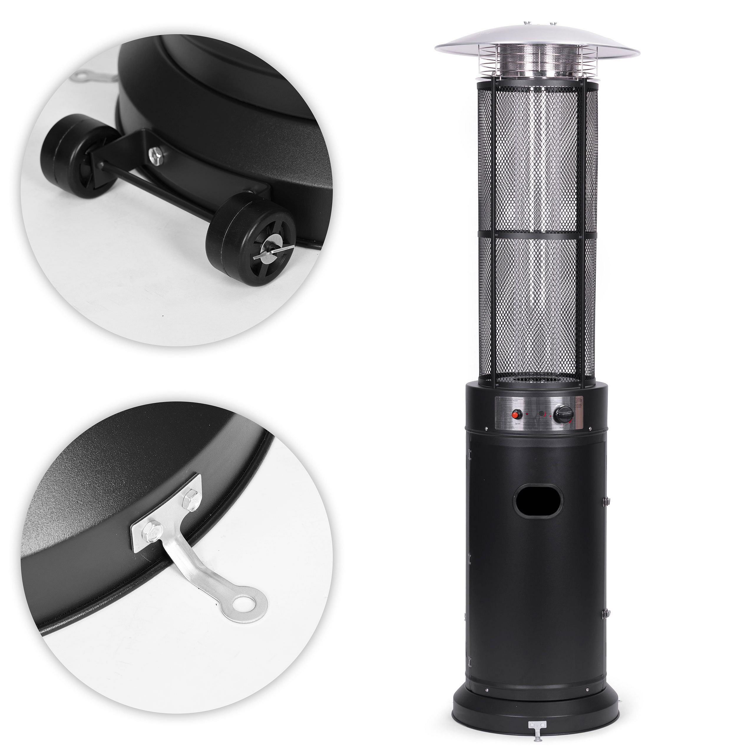 Around the heater's base, there are four additional mounting points that allow secure attachment to the ground. This function is particularly useful in restaurant patios, events, and commercial spaces where fixed placement is necessary.