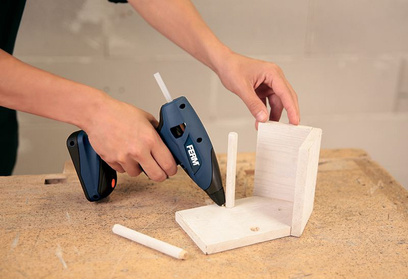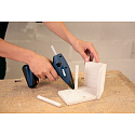 je Ideální, malá a obratná akumulátorová lepicí pistole pro lepení a spojování dřeva, umělých hmot, kartonu, skla, keramiky, kamene, látek, korku, kůže a kovů. Tavná lepicí pistole s rychlostí nahřátí - 15 s.