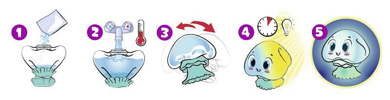 Glibbi Medúza se slizem, který svítí ve tmě. Když se medúza naplní Glibbi práškem, doleje vlažnou vodou a pořádně protřepe, vytvoří se tyrkysově zabarvený sliz, se kterým si lze hrát. Když medúzu se slizem nasvítíte pod lampou, sliz poté bude svítit ve tmě. Po skončení hraní sliz můžete bezpečně uložit do medúzy. Díky absenci konzervačních látek a umělých dráždidel je Glibbi Slime naprosto dermatologicky bezpečný. V balení je 2x 7g prášku Glibbi.