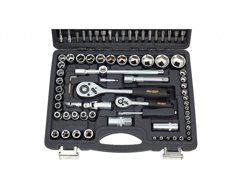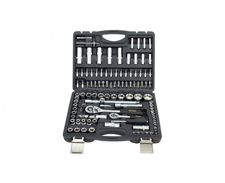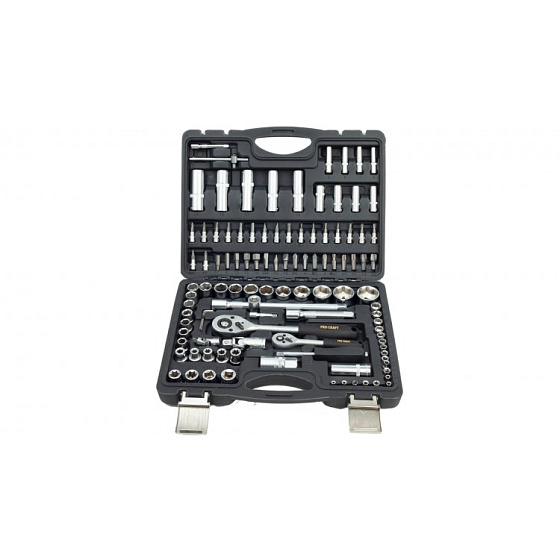 Součástí balení: 8x 1/4" hlavice nástrčné prodloužené, 2x1/4" a 2x 1/2» prodlužovací nástavec, 1/4" a 1/2" univerzální kloub, 1/4" a 1/2" ráčna, 5x1/4" a 8x1/2" hlavice nástrčné torx, 1/4" šroubovák, 1/4