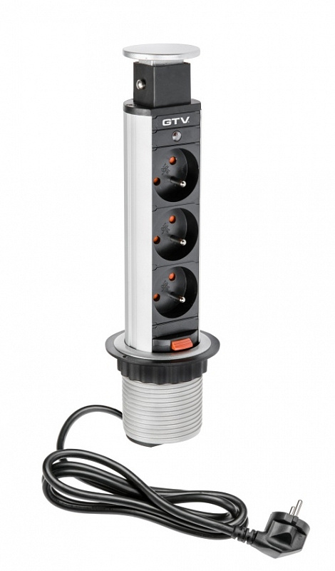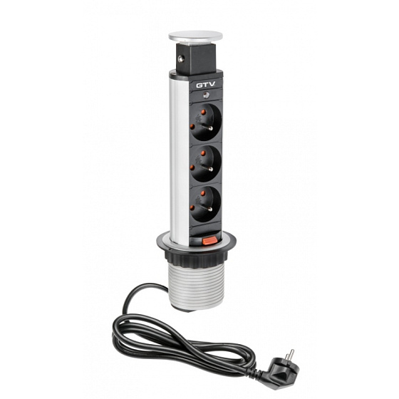 GTV AE-BPW3U60-80 Zásuvky stolní vestavný 60mm, 3X zásuvka (stříbrná)