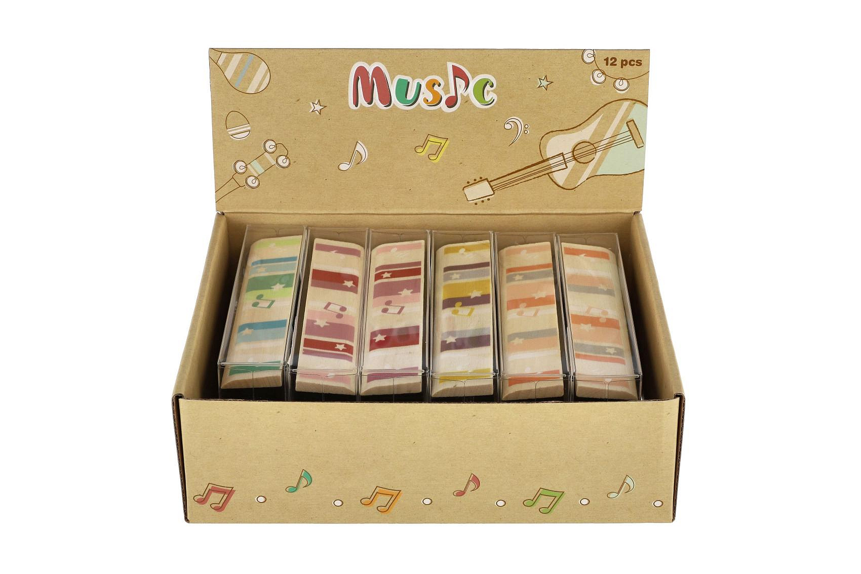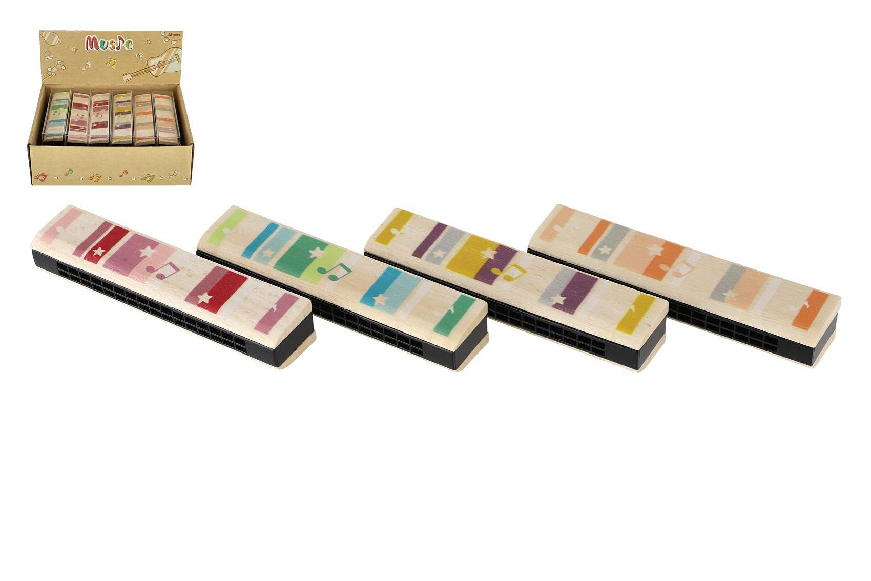Popis Harmonika dřevěná 13cm 4 barvy v blistru 12ks v boxu