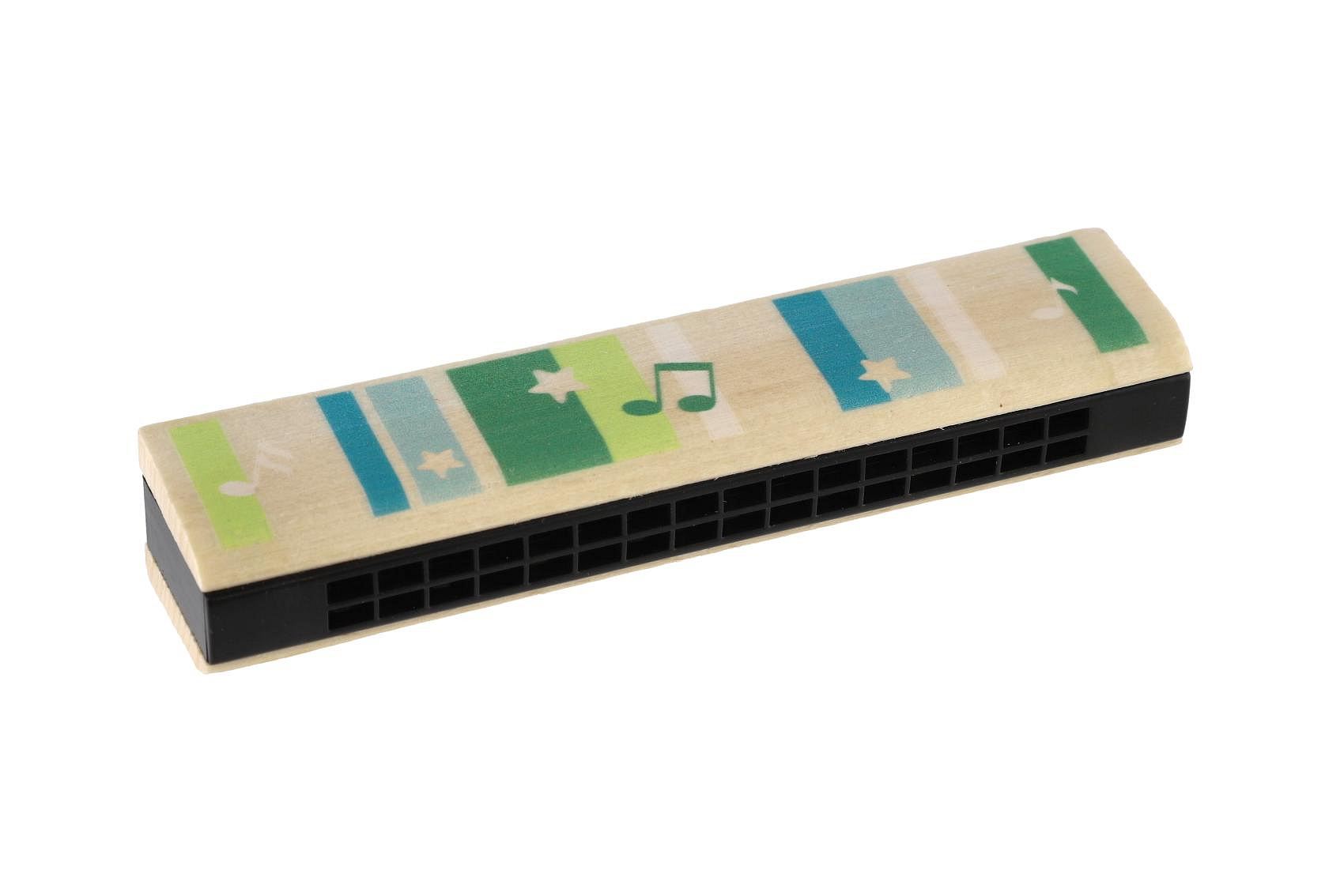 Krásná barevná foukací harmonika pro malé hudebníky. Harmonika je vyrobená z kvalitního dřeva. Tato foukací hračka vypěstuje u dětí lásku k hudbě již od malička. Velikost harmoniky je akorát do dětských ručiček. Rozměry výrobku 13 x 3 x 3 cm. Vhodné pro děti od 3 let.