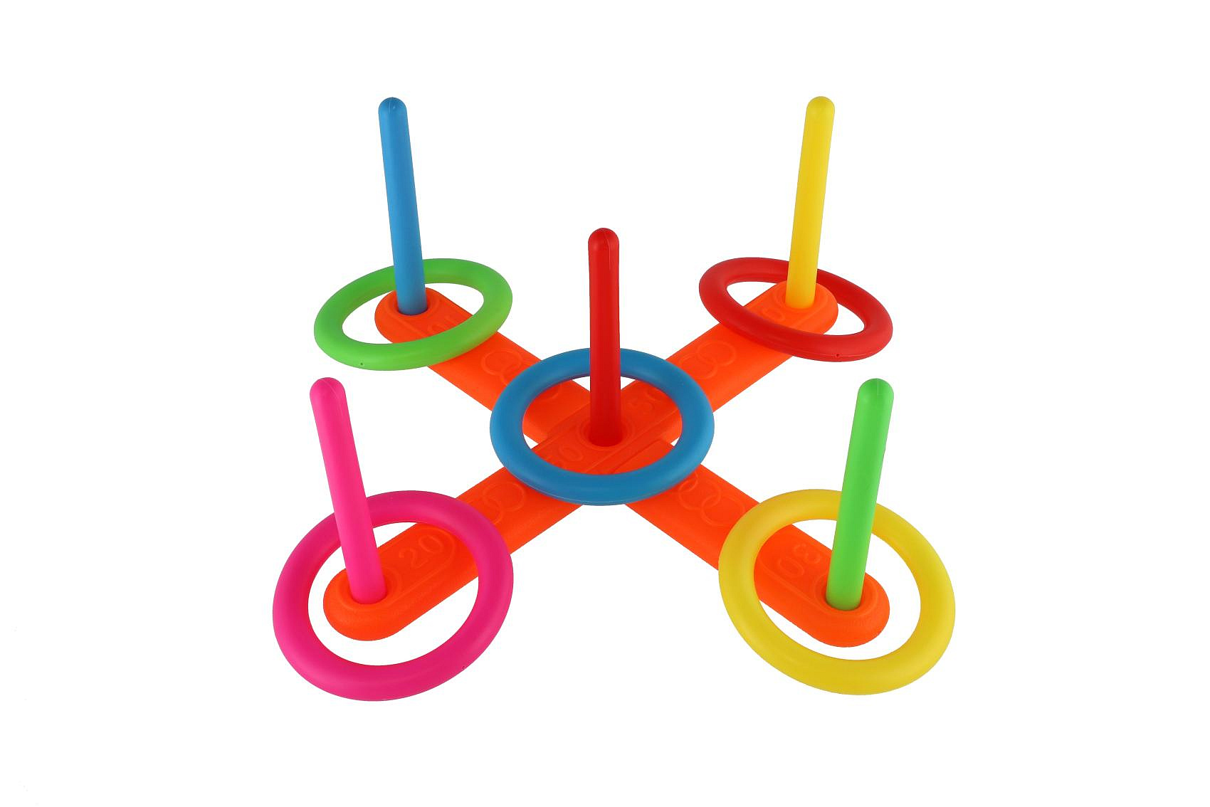 Popis Házecí hra kříž s kruhy plast 12ks v krabici 42x19x6cm