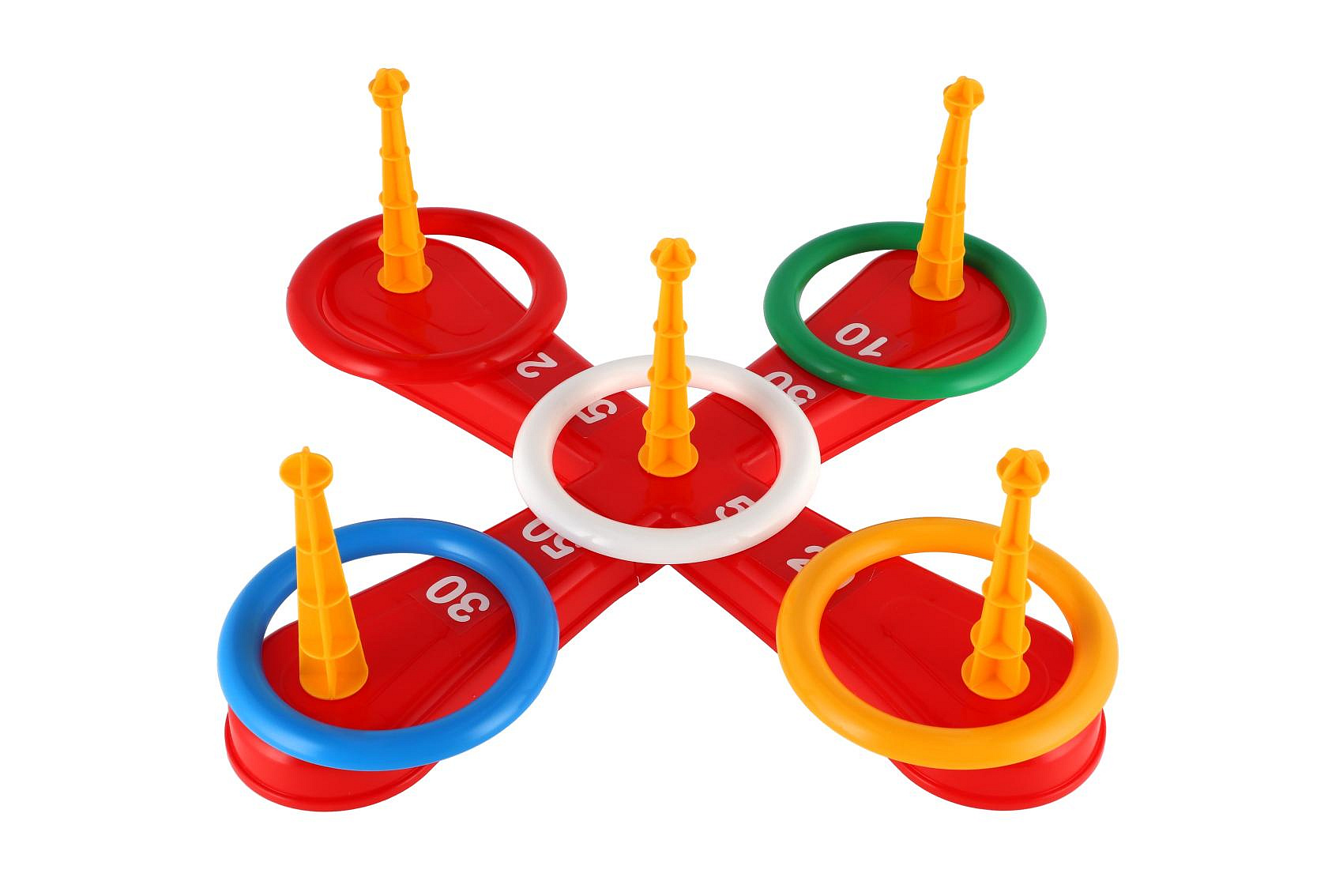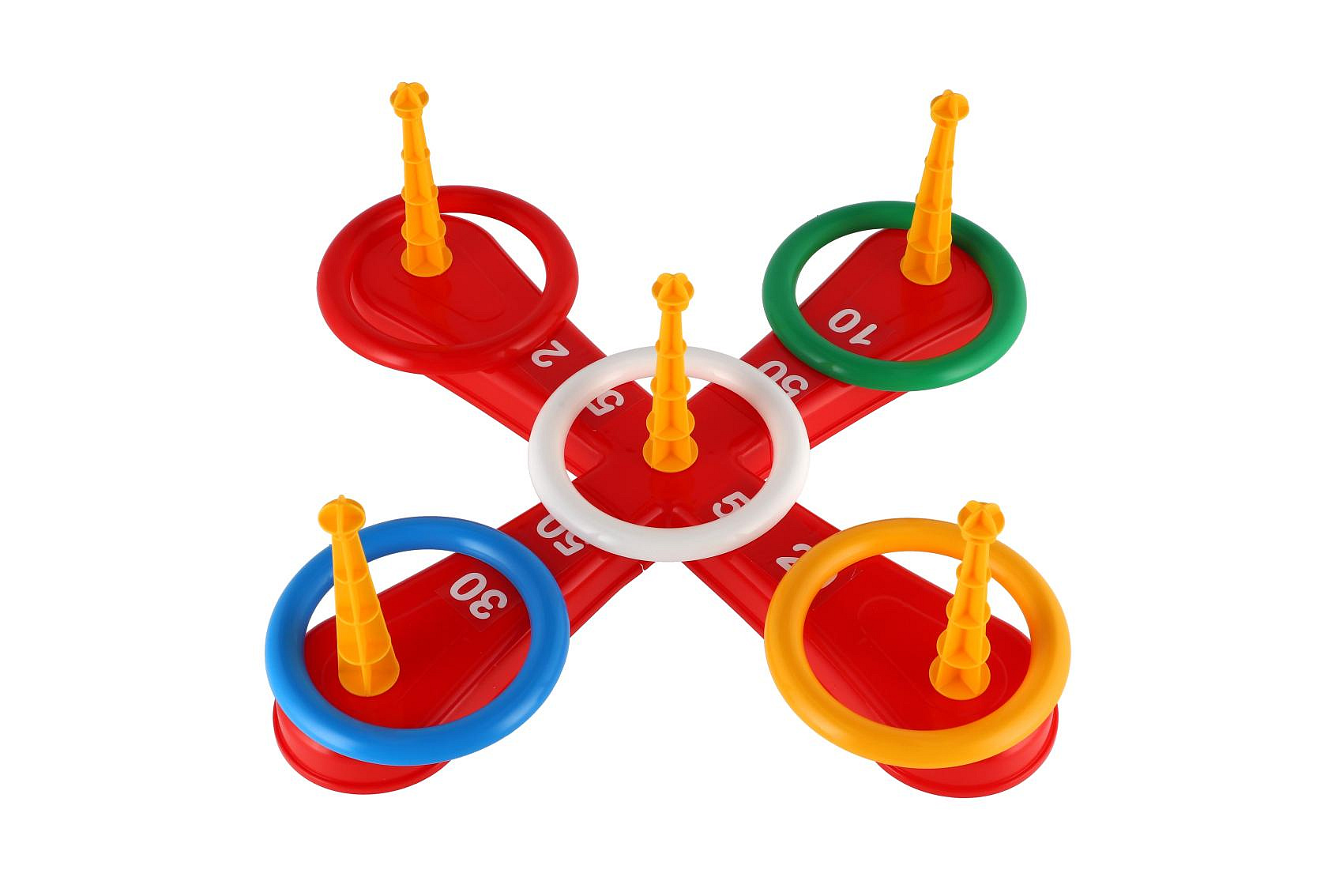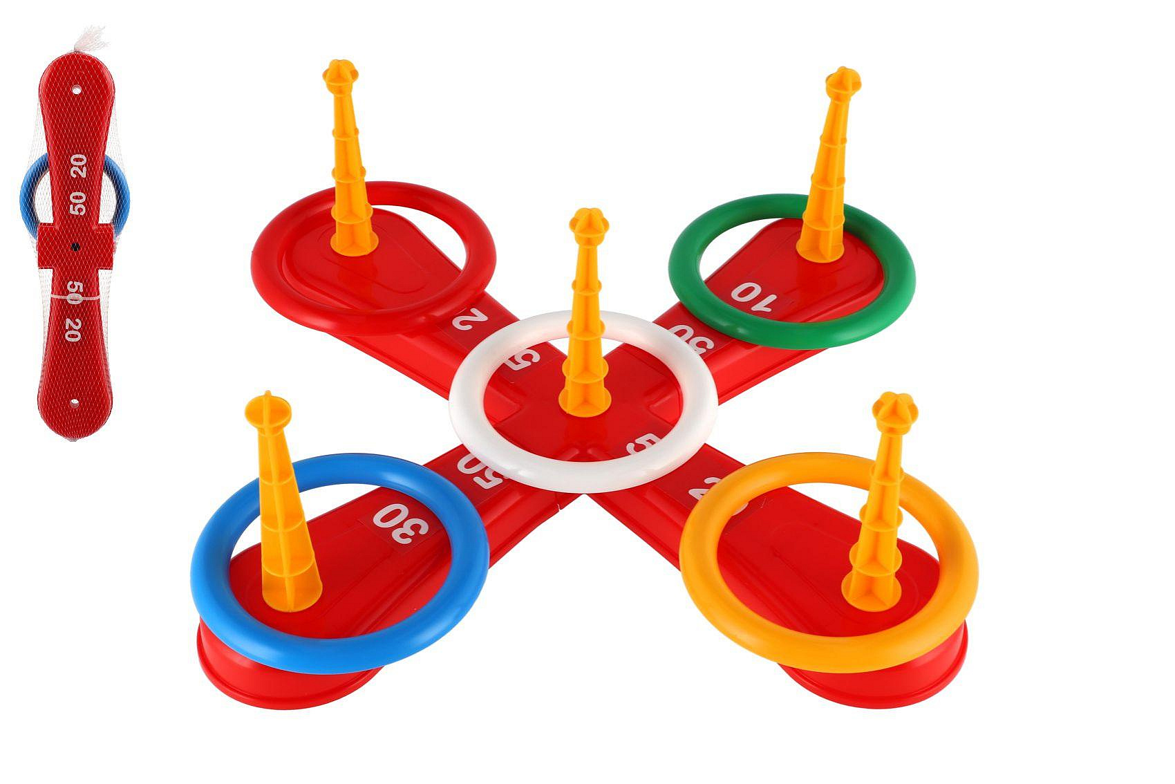 Zábavná hra, při které se hází kroužky na kříž. Balení obsahuje kříž s pěti hroty a pět barevných kroužků. Jednotlivé dílky jsou vyrobené z plastu. Tato hra se bude líbit zejména nejmenším dětem, které mohou sbírat body za každý hod, kdy se jim podaří umístit kroužek na hrot. Natrénují si také přesnost a trpělivost. Vhodné od 3 let.