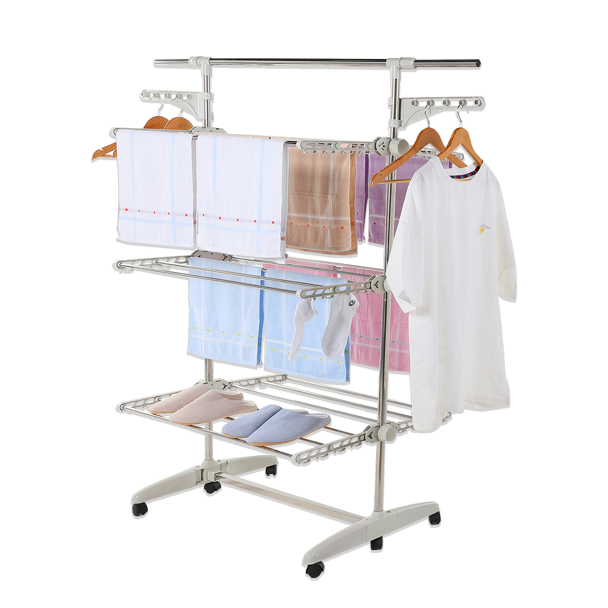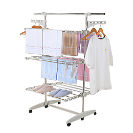 Hledáte věšák na oblečení s velkou kapacitou, který vám pomůže při sušení oděvů? Představujeme vám multifunkční věšák na oblečení Herzberg Moving Clothes Rack, který vám jistě pomůže zorganizovat sušení prádla. Sušák na prádlo pojme k sušení 2 pračky vypraného prádla nebo 20 m prádla. Rozteče mezi rozkládacími tyčemi byly prozkoumány tak, aby prádlo bylo dokonale odvětráváno a rychle se usušilo. Stojan je vybaven 2 věšáky na dveře a umožňuje prodloužit šaty, košile nebo jakýkoli jiný oděv, který se může pomačkat. Kovová a vyztužená plastová konstrukce pro větší robustnost. Jednoduchá a rychlá instalace zabere jen několik vteřin. Stojan je upevněn na 4 nožičkách pro větší stabilitu a 6 kolečkách, která usnadňují jeho přemisťování. Po složení zabírá velmi málo místa a lze jej snadno uložit za dveře nebo do skříně.