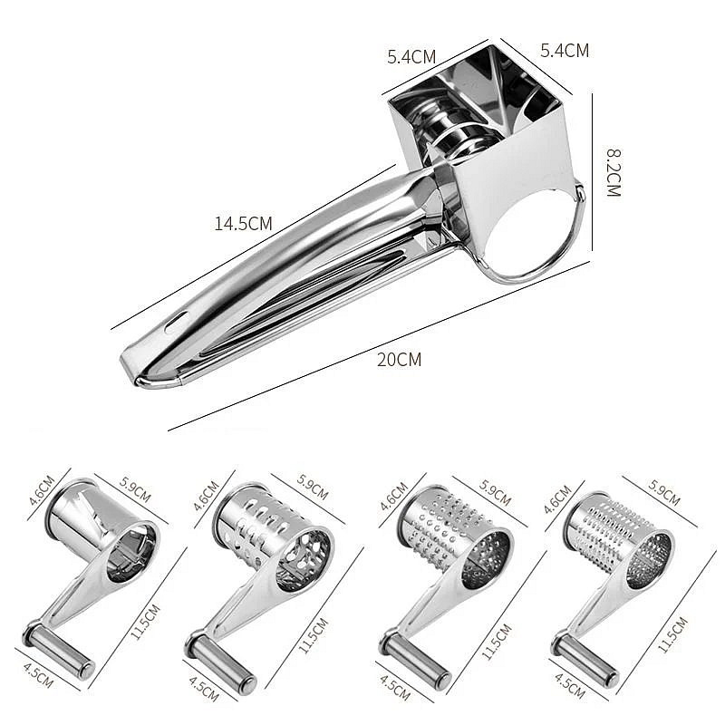 - Interchangeable Rotary Drums: This cheese grater comes with three different rotary drums grater and one slicer drum, offering versatile grating options. Whether you prefer fine, medium, or coarse textures, you can easily swap out the drums to suit your specific grating needs.