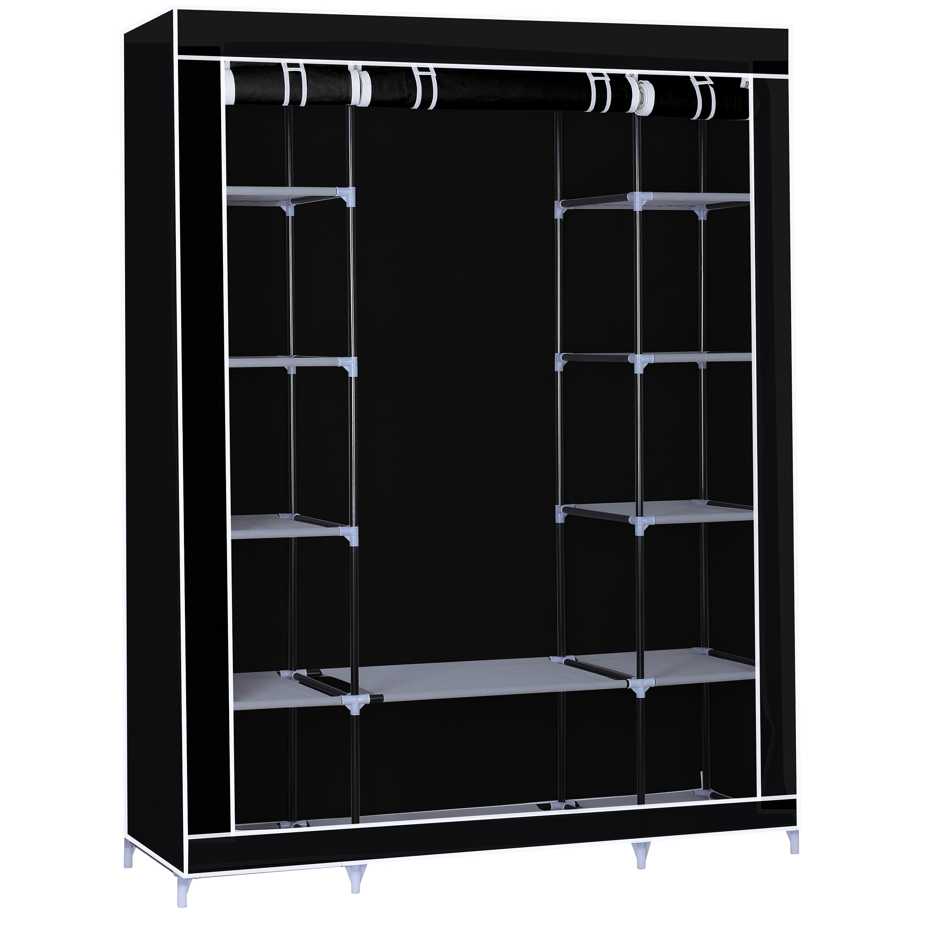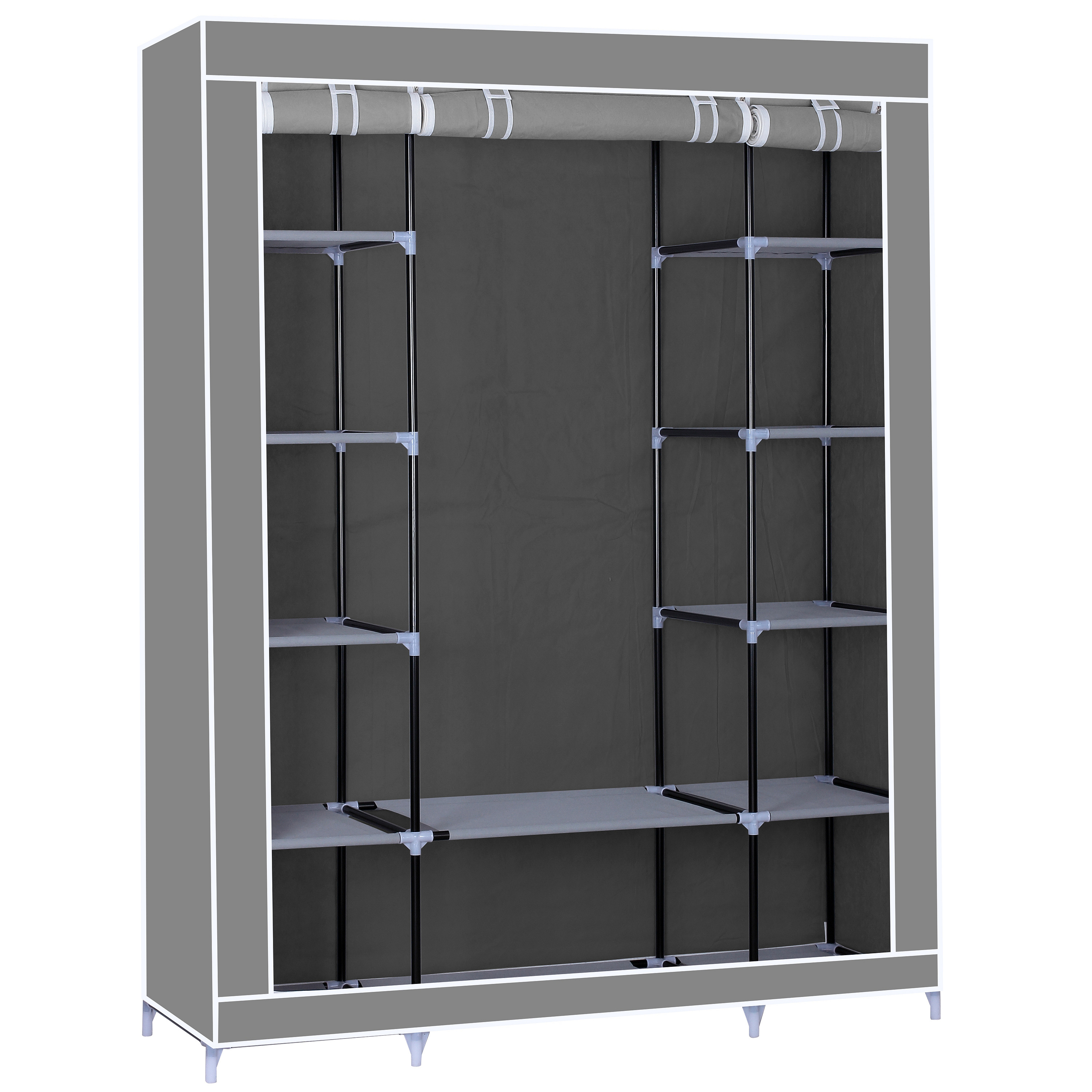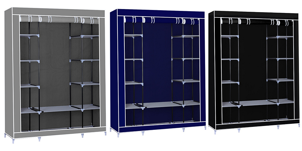 Organize your things with a style and compliment your room with HG-8009 from Herzberg. Constructed with a powder coated heavy duty steel frame, its material offers high bearing capacity and is not easy to bend or dent. The selected non woven fabric cover protects your garments from dust, moths, and dirt, and provide you room vibrant accent. It also has a roll-up fabric door that can be secured by a velcro tape, and when you want to fully close the wardrobe, you can just unfold the roller shutter to hide your clothes and other kinds of stuff with a rust free zipper. Creating and connecting its structure is a PP plastic connector which is sturdy, durable and resistant to high temperatures. This wardrobe has a 1 movable hanging rod provides extra hanging and storage space for seasonal clothes or other daily accessories. It has also 12 shelves for storing garments or other things such as shoes, toys, and hats. It also comes with clear installation instructions for quick and easy construction and no tool is required. The Herzberg HG-8009 a perfect addition to any home with storage issue and it provides a clean and comfortable living space.