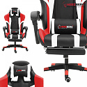Race car-style gaming chair with retractable footrest