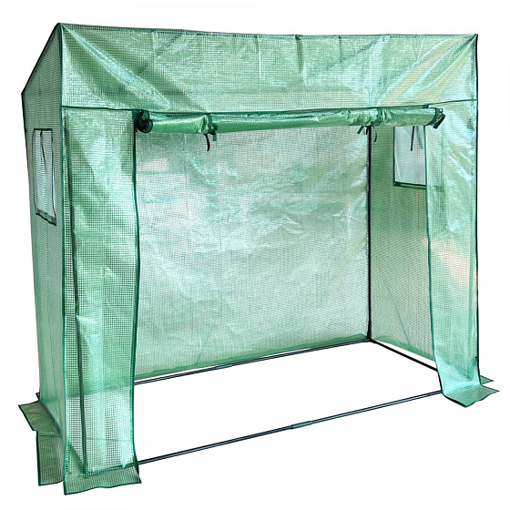 Přední panel krytu lze srolovat pro větrání a světlo do skleníku. Kryt je navržen tak, aby rozptyloval sluneční světlo a chránil jemné rostliny před poškozením UV zářením. Skleník má v střeše otvory pro tyče, které mohou vyčnívat, a pojme až tři rostliny rajčat. Toto je vynikající doplněk do každé zahrady nebo na terasu.Funkce: