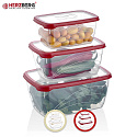 3 velikosti nádob a odpovídající barevná víčka
