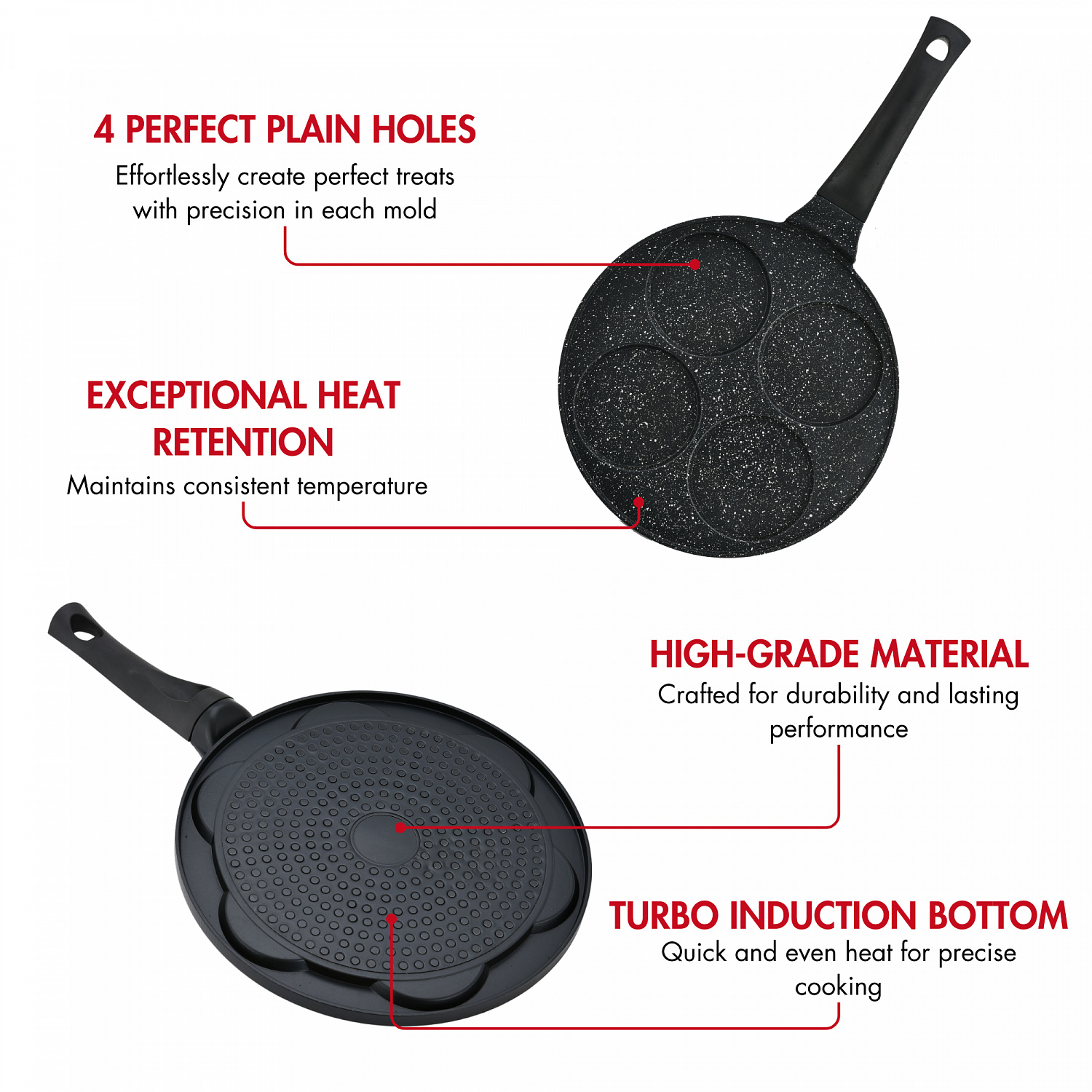 - Efektivní rozložení tepla: Vyrobeno z 3mm silného hliníku pomocí integrovaného procesu tlakového lití, tato pánev zajišťuje odolnost a rychlejší, rovnoměrnější ohřev. Dosáhněte dokonalých výsledků pokaždé bez tmavých skvrn na vašich palačinkách nebo omeletách.