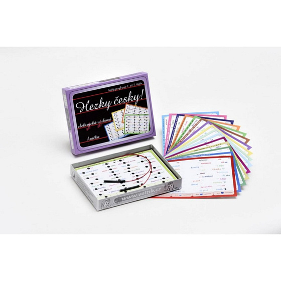 Elektrická výuková hračka k osvojení základních pravidel českého pravopisu vyučovaných v 1. až 3. třídě základní školy. Na 16 listech je natištěno 640 pečlivě vybraných slov, do kterých děti doplňují chybějící písmenka. Ve spodní části každého listu jsou uvedeny možnosti odpovědí. Jednotlivé listy s úlohami jsou v souladu s učebnicemi pro 1. až 3. třídu základní školy. Na baterie, v krabici 22 x 16 x 3 cm.