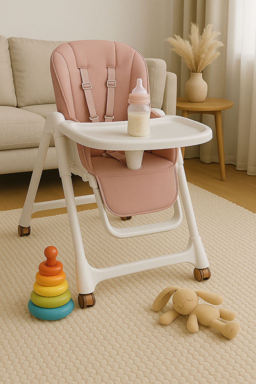 Under the tray, there is a special element that keeps the child securely in the seat and prevents them from sliding down, so you don’t have to worry about your child’s safety. When the child becomes more independent, the blocking element can be easily removed.