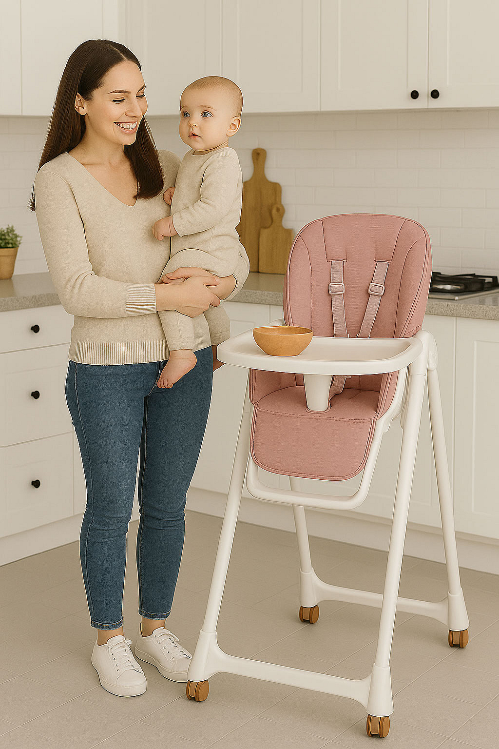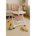 The seat can be adjusted in height, and thanks to special buttons you can easily raise or lower it. If your little one becomes independent and no longer needs close supervision, a lower chair will be ideal.
