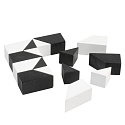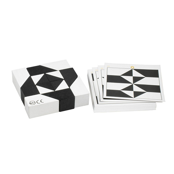 Černobílý tangram, logická hra pro jednoho hráče. Černobílé kameny je nutné stavět dle předlohy tak aby zaplnili plochu čtverce dle papírových předloh.
