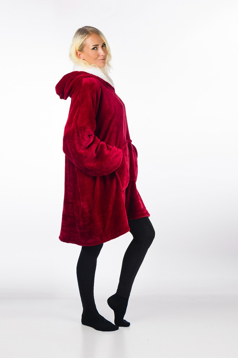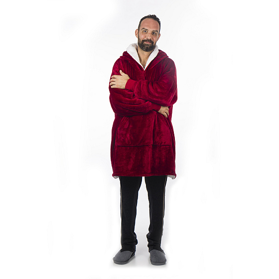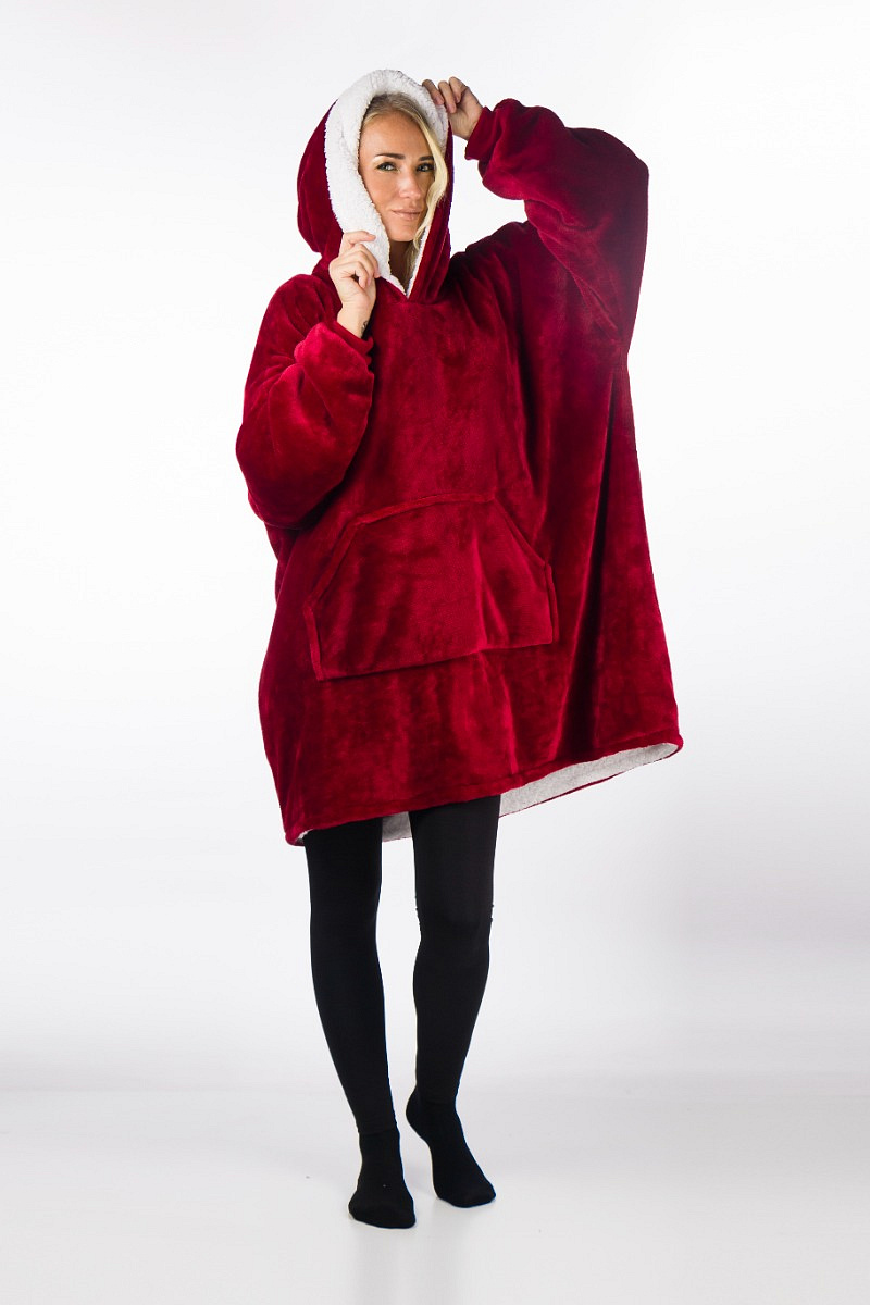 Popis HomeVero - Pohodlná deka - Mikina s kapucí - Kostkovaná - Červená