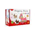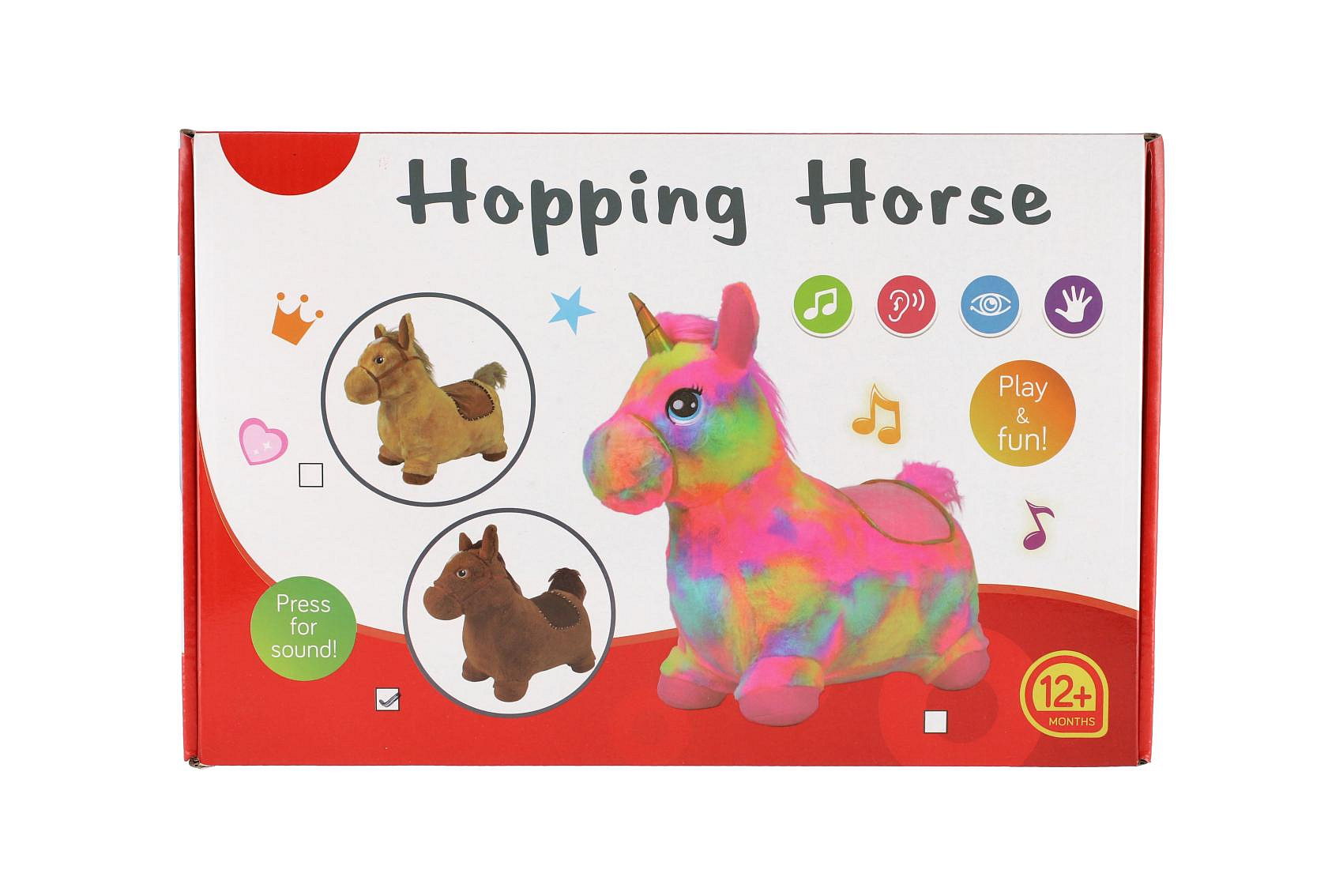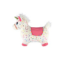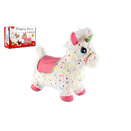 Hopsadlo jednorožec plyš bílý s hvězdičkami výš. sedla 23cm na bat. se zvukem v krab. 35x22cm 12m+