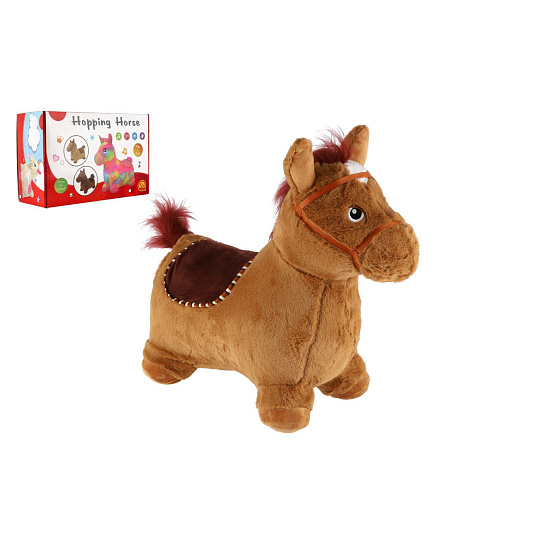 Hopsadlo kůň plyš hnědý výška sedla 23cm na baterie se zvukem v krabici 35x22x13cm 12m+