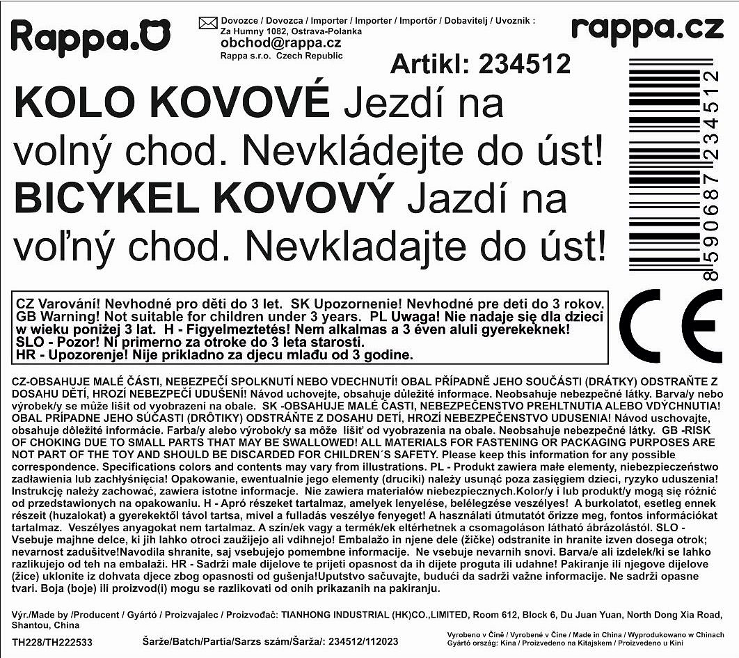Mini horské kolo udělá radost všem fanouškům cyklistiky. Jezdí na volný chod a jeho velikost je 20 c