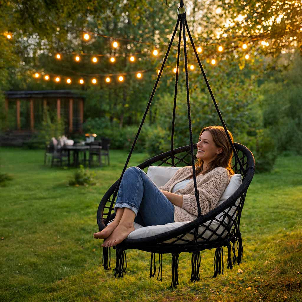 Z hamakiem w kształcie fotela relaks to czysta przyjemność! Daj się porwać marzeniom, zaparz ulubioną herbatę i weź wciągającą książkę.