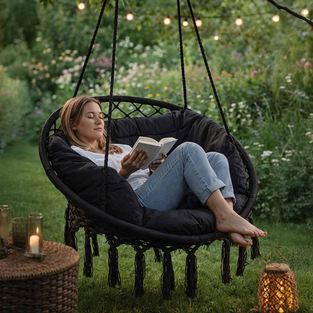 Z hamakiem w kształcie fotela relaks to czysta przyjemność! Daj się porwać marzeniom, zaparz ulubioną herbatę i weź wciągającą książkę.