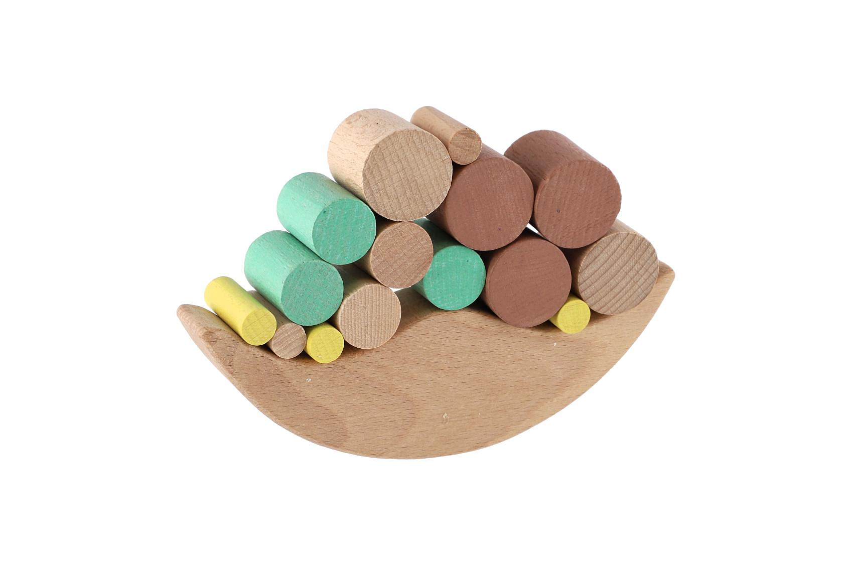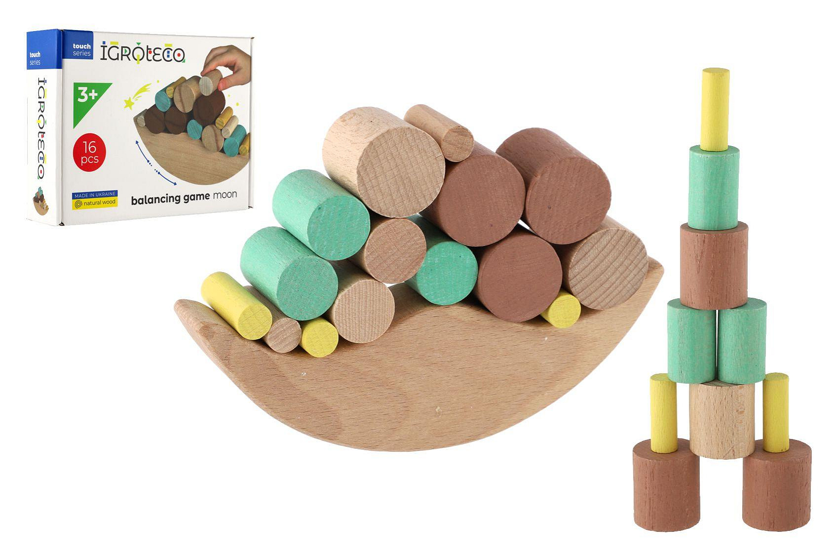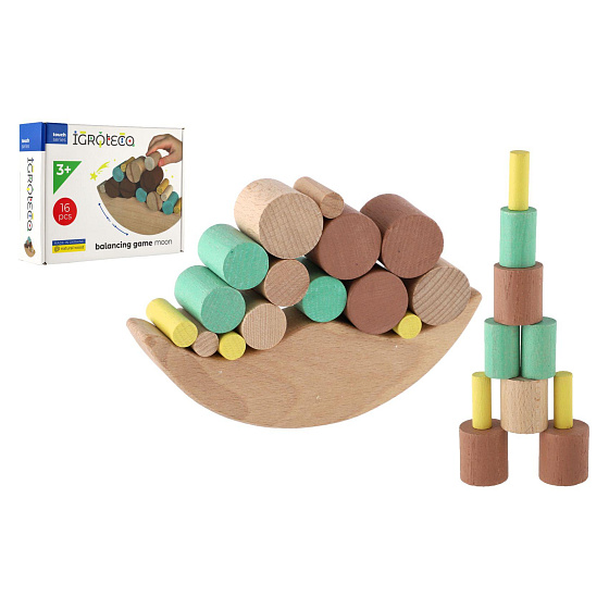 Zajímavá dovednostní hra Balancující dřevo. Hra spočívá v uspořádání, co největšího počtu barevných, různě velkých bloků na dřevo ve tvaru měsíce. Během uspořádávání bloků se měsíc neustále kýve tak pozor, abyste bloky neshodily z měsíce. Vynikající hra, která podporuje rozvoj vzorově-motorické koordinace a navíc má pozitivní vliv na utváření prostorové představivosti dítěte. Počet dílků: 16 kusů Rozměr balení: 22 x 16 x 6 cm Vhodné pro děti od 3 let