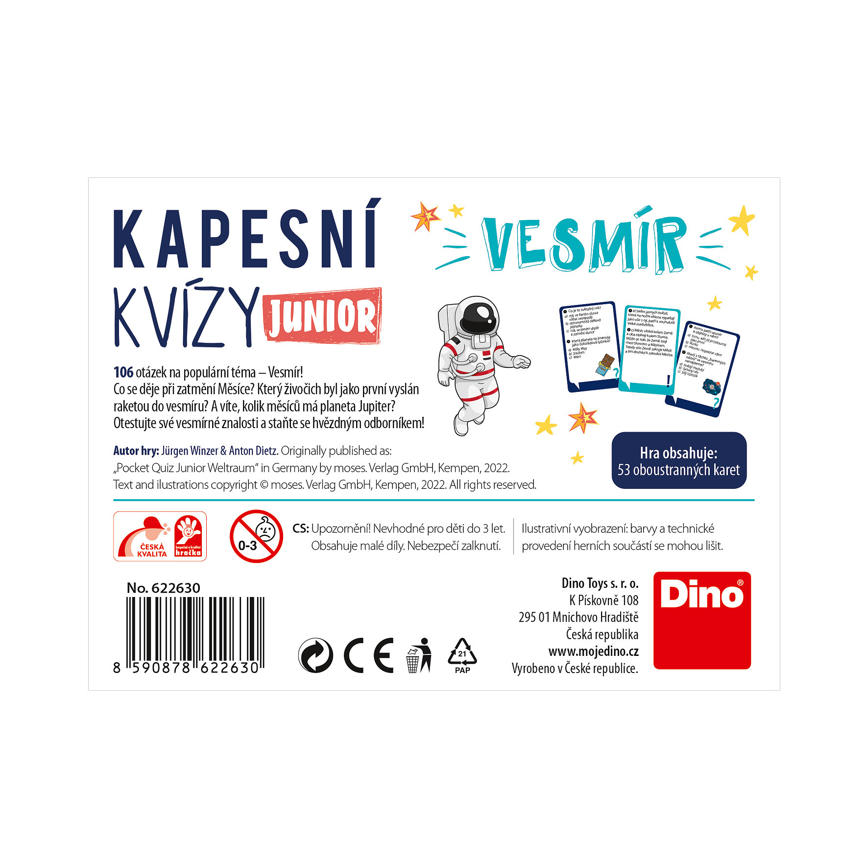106 otázek na populární téma – Vesmír! Co se děje při zatmění Měsíce? Který živočich byl jako první vyslán do vesmíru? A víte, kolik měsíců má planeta Jupiter? Otestujte své vesmírné znalosti a staňte se hvězdným odborníkem! Věk 8+