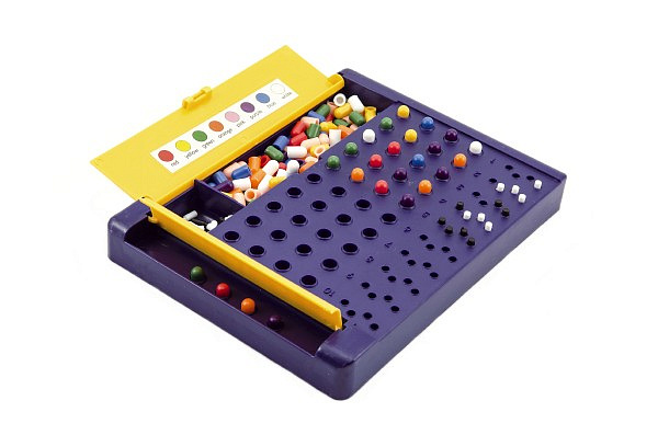 Hráč nastaví pod stříškou kombinaci z pěti barevných kolíků a druhý hráč se ji snaží během deseti pokusů odhalit, po každém kole má indicie kolik kolíků je umístěno správně. Rozměr krabice: 19,5 x 29 x 3,5 cm Vhodné od 6 let