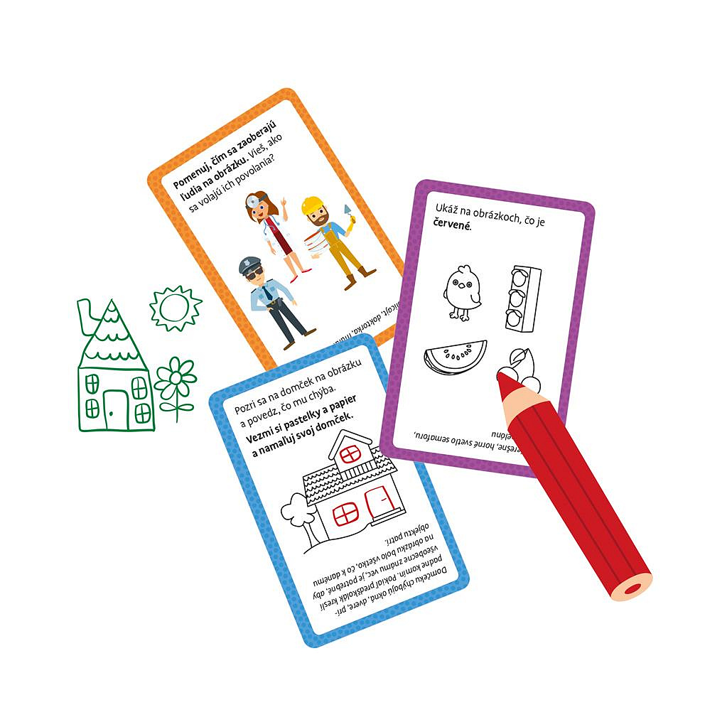 Zábavná kvízová hra pro mladší předškoláky (4 -5 let), která umožní nenásilnou formou dětem i rodičům procvičit či zopakovat vše, co by děti v tomto věku měly znát a umět. Balení obsahuje 60 kvízových karet a pravidla. Rozměry krabičky: 11,5 x 18 x 3,5 cm Vhodné pro děti od 4 let