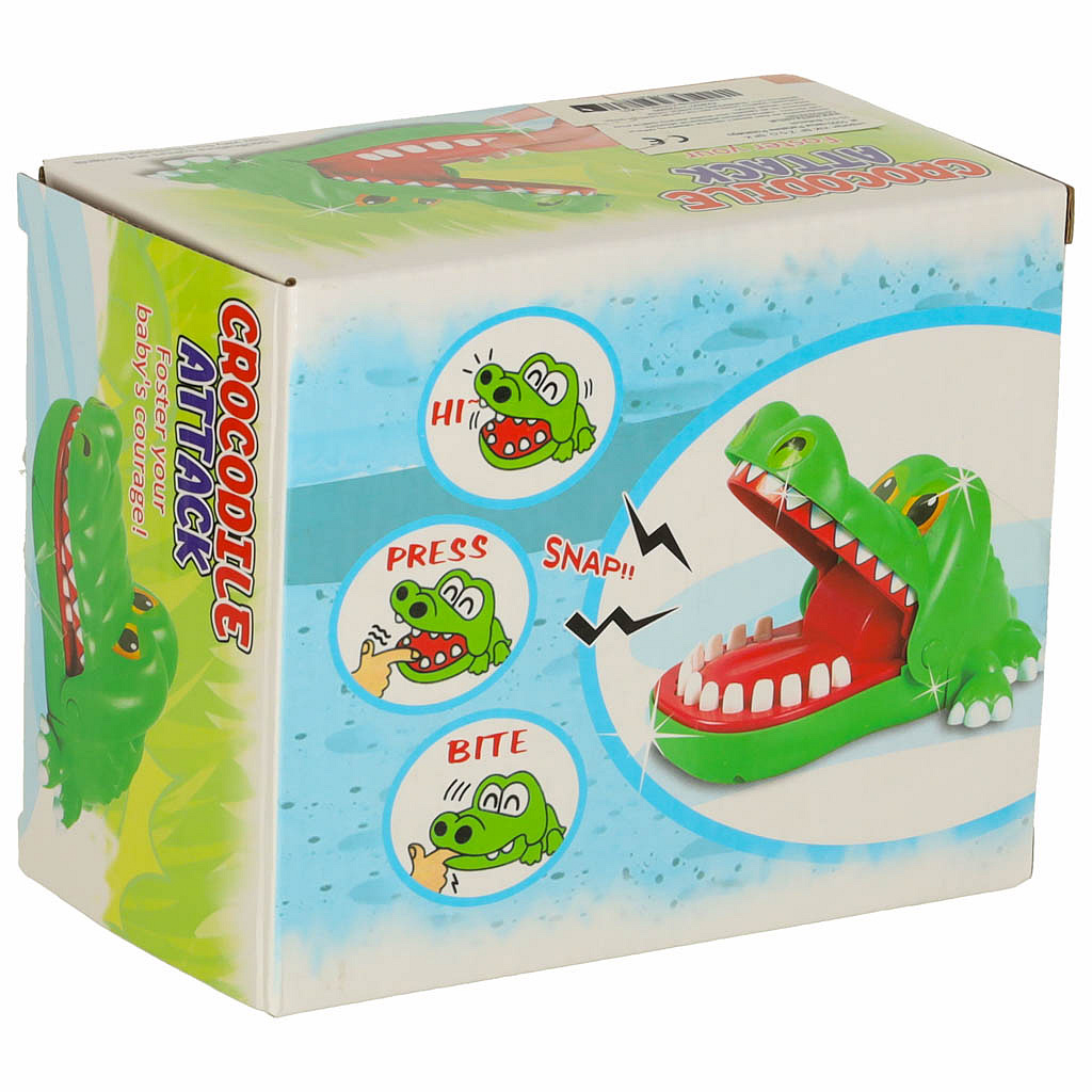 Zwykle po wciśnięciu ząbka, nic się nie dzieje, ale uwaga! Jeden z ząbków krokodyla jest chory i gdy na niego natrafimy, zwierzak szybko kłapnie szczękami, gryząc nas za palec!