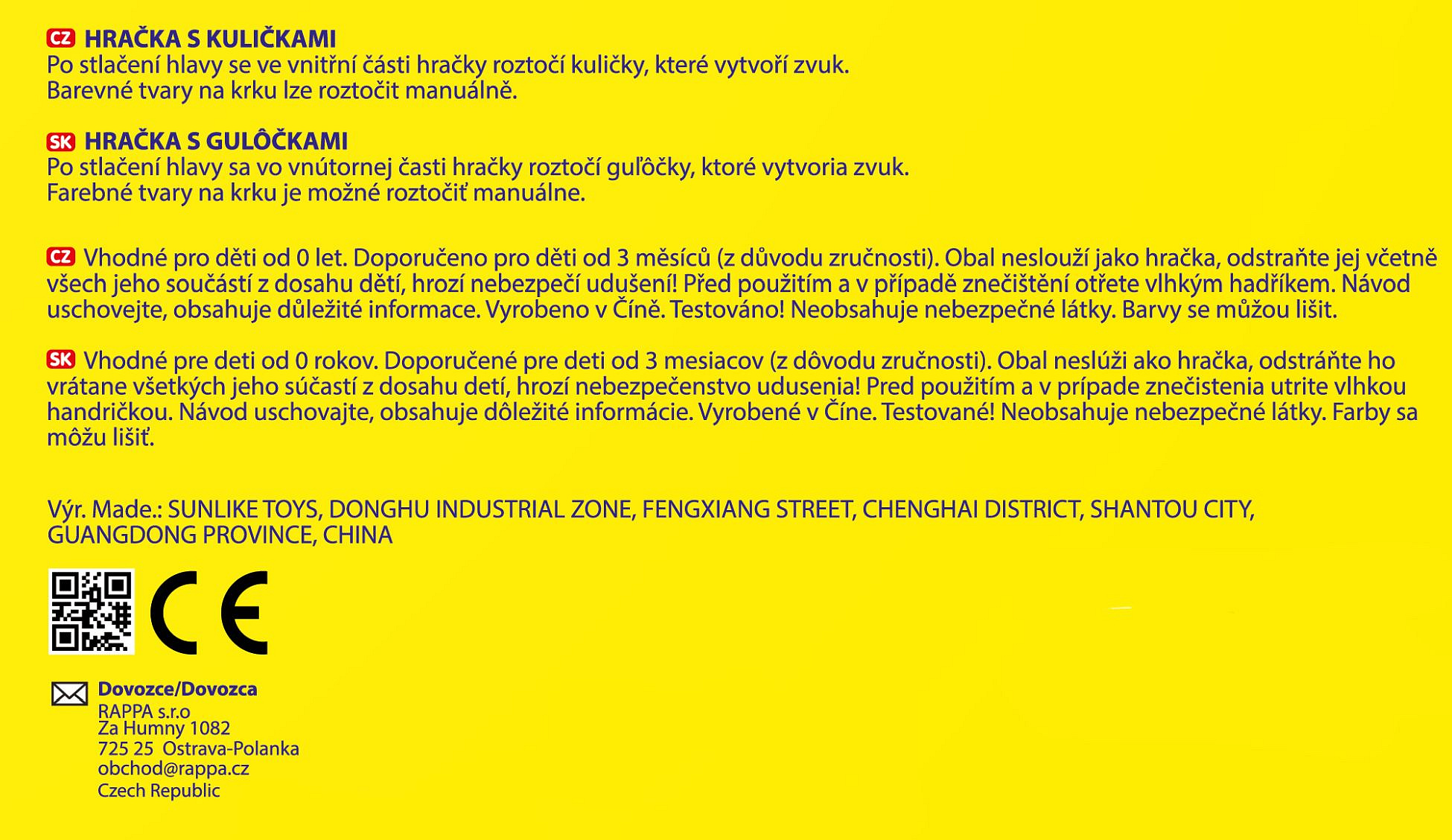 Pestrobarevný mechanický kolotoč ve tvaru dinosaura je naplněný barevnými kuličkami, které budou po zmáčknutí hlavy rotovat, skákat a vydávat chrastící zvuk.Tato hračka zaujme a pobaví i ty nejmenší děti.