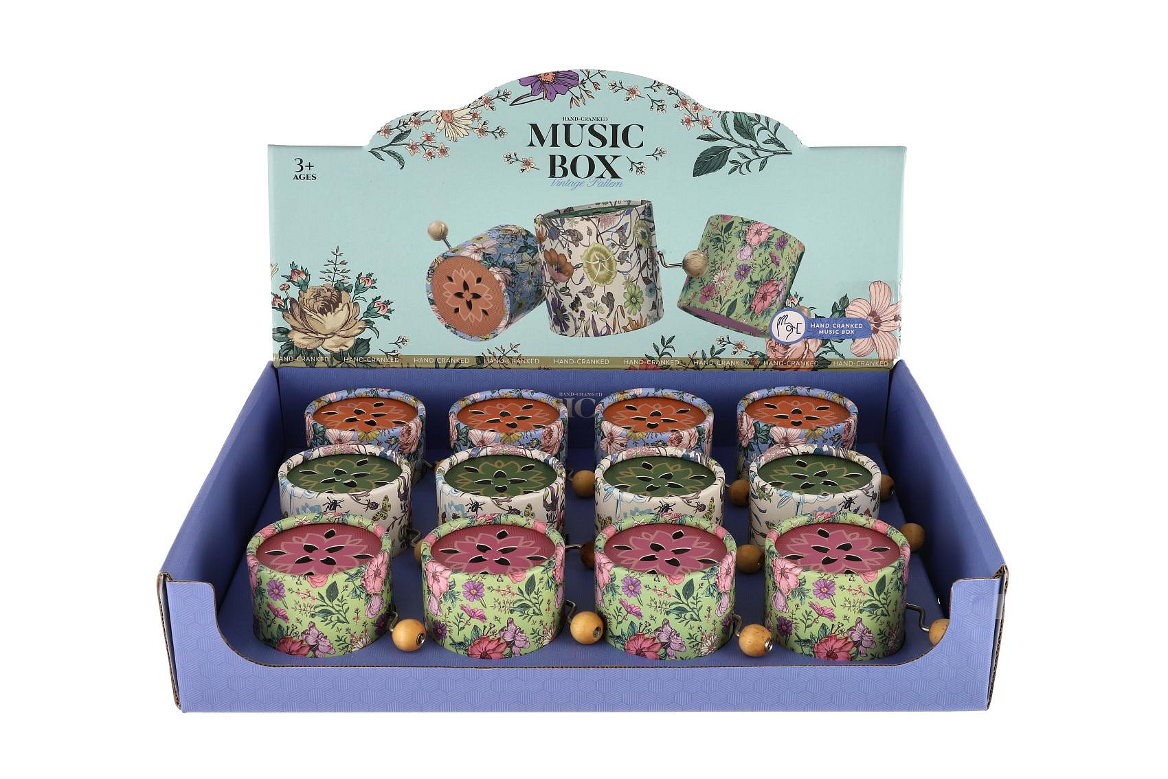 Hrající skříňka mlýnek kov/papír 9cm 3 barvy 12ks v boxu
