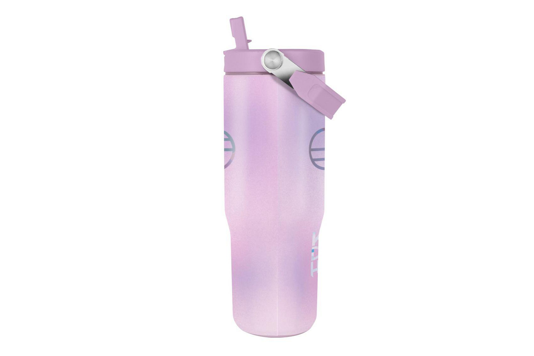 Hrnek cestovní s uchem s brčkem 850ml K-pop Demon Hunters/Lovkyně démonů kov/plast 24cm v sáčku