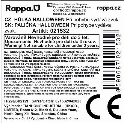 Exkluzivní hůlka se zvukovým efektem! Hůlka o délce 38 cm je dekorována halloweenskými motivy. Otáčením o 180° hůlka vydává zvuk. Užij si tu pravou halloweenskou atmosféru!