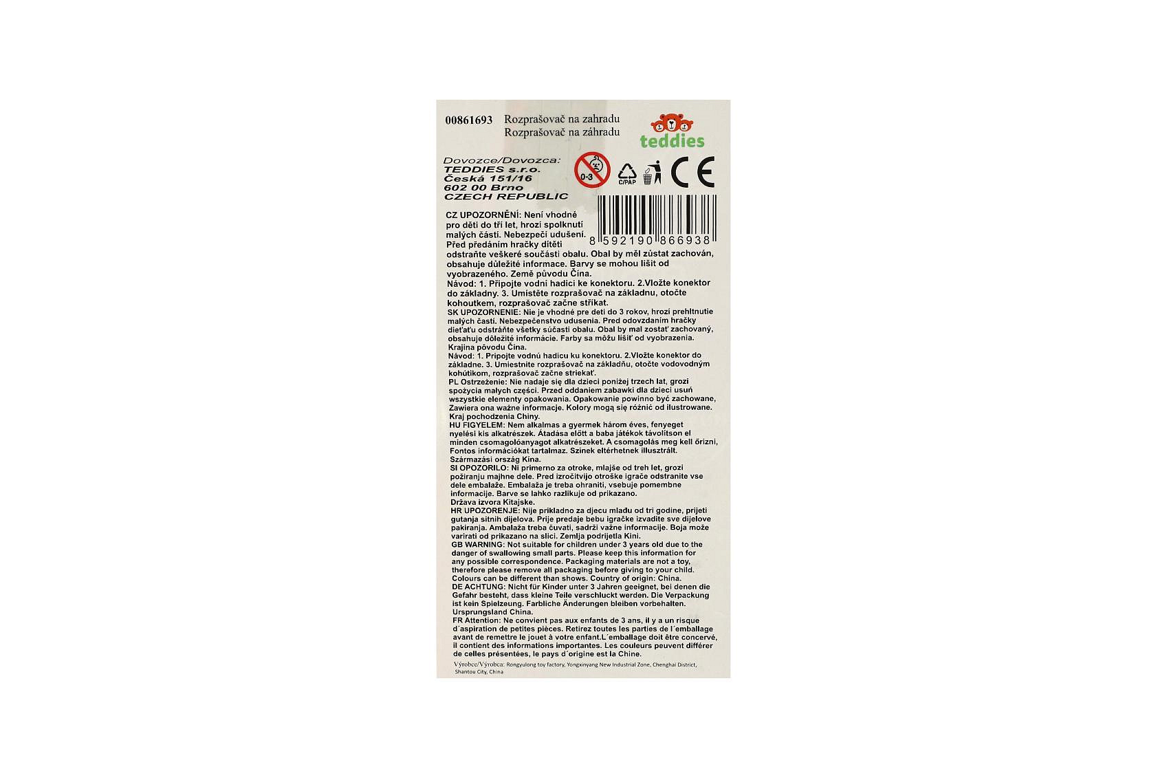 Hydrant vodní rozprašovač na zahradu plast 10x23cm v krabici 15x27x10,5cm