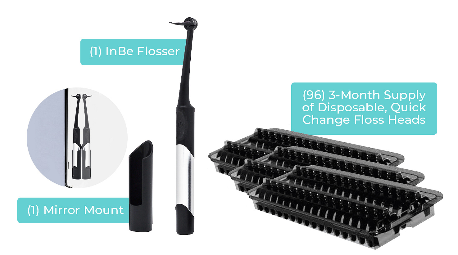 The InBe interdental flosser works super simple. The floss device consists of a holder where you attach a replaceable disposable floss head on. A floss thread is taut on the floss head and it will vibrate gently as soon as you turn on the flosser, just like an electric toothbrush. The battery-operated flosser is compact and lightweight, making it easy to reach every tooth, even that hard-to-reach spot in the back of your mouth! The automatic flosser has three gentle ultrasonic vibration modes, with which the plaque, tartar and dirt is easily removed. Flossing couldn't be easier!