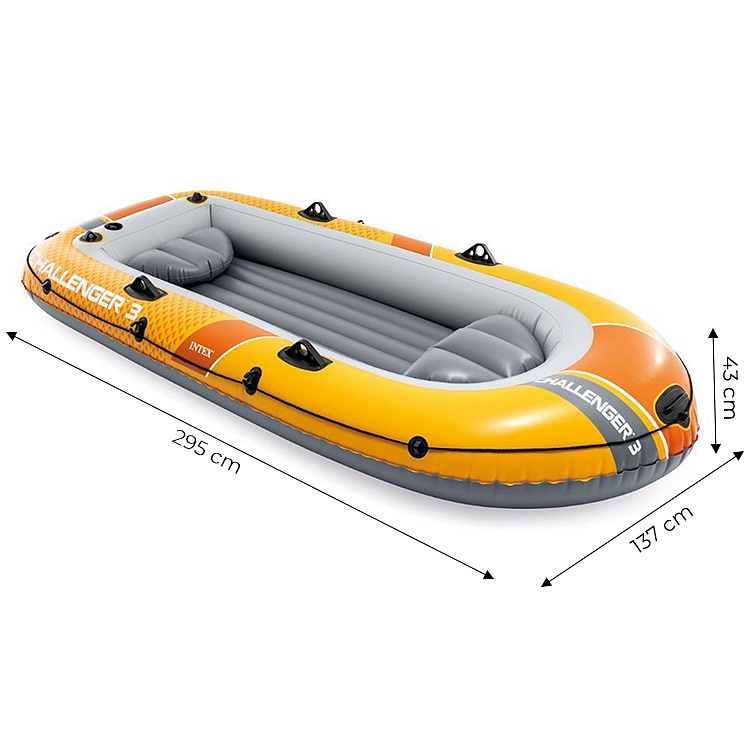 The INTEX Challenger 3 boat is a great choice for those who want to fully enjoy their time by the water and experience active outdoor relaxation. It works perfectly for calm lake cruises, holiday trips, as well as fishing or exploring less accessible areas. It is an ideal solution for couples, friends, or parents with a child looking for a convenient and mobile way to enjoy water recreation. Thanks to its easy operation and quick setup, you can spontaneously head out onto the water and enjoy freedom, peace, and closeness to nature – wherever you are.