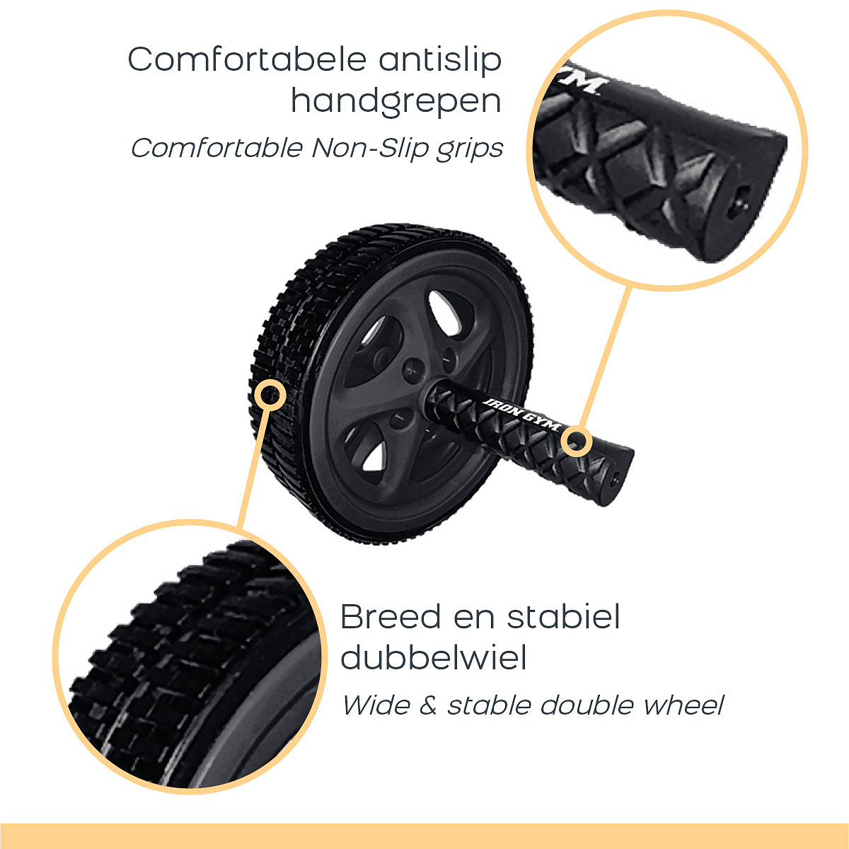 Build muscle strength and enhance your balance with the Iron Gym Ab Wheel. By making a rolling motion, you train the muscles in your upper body.