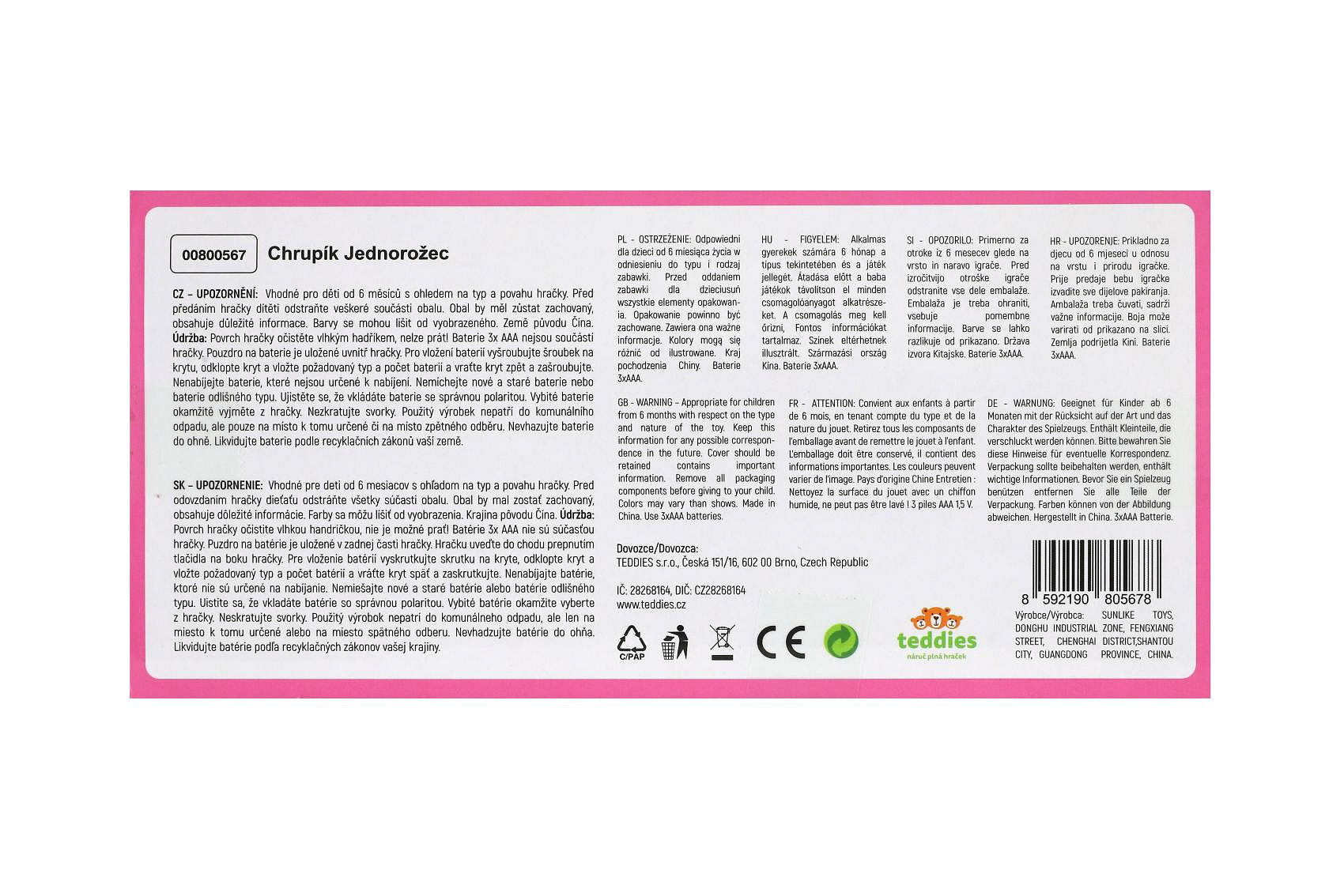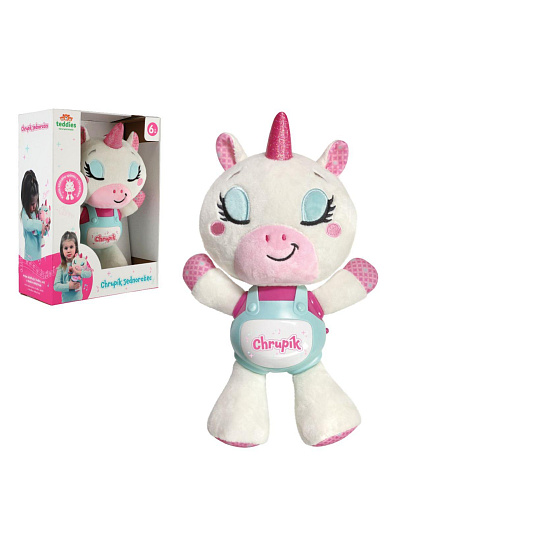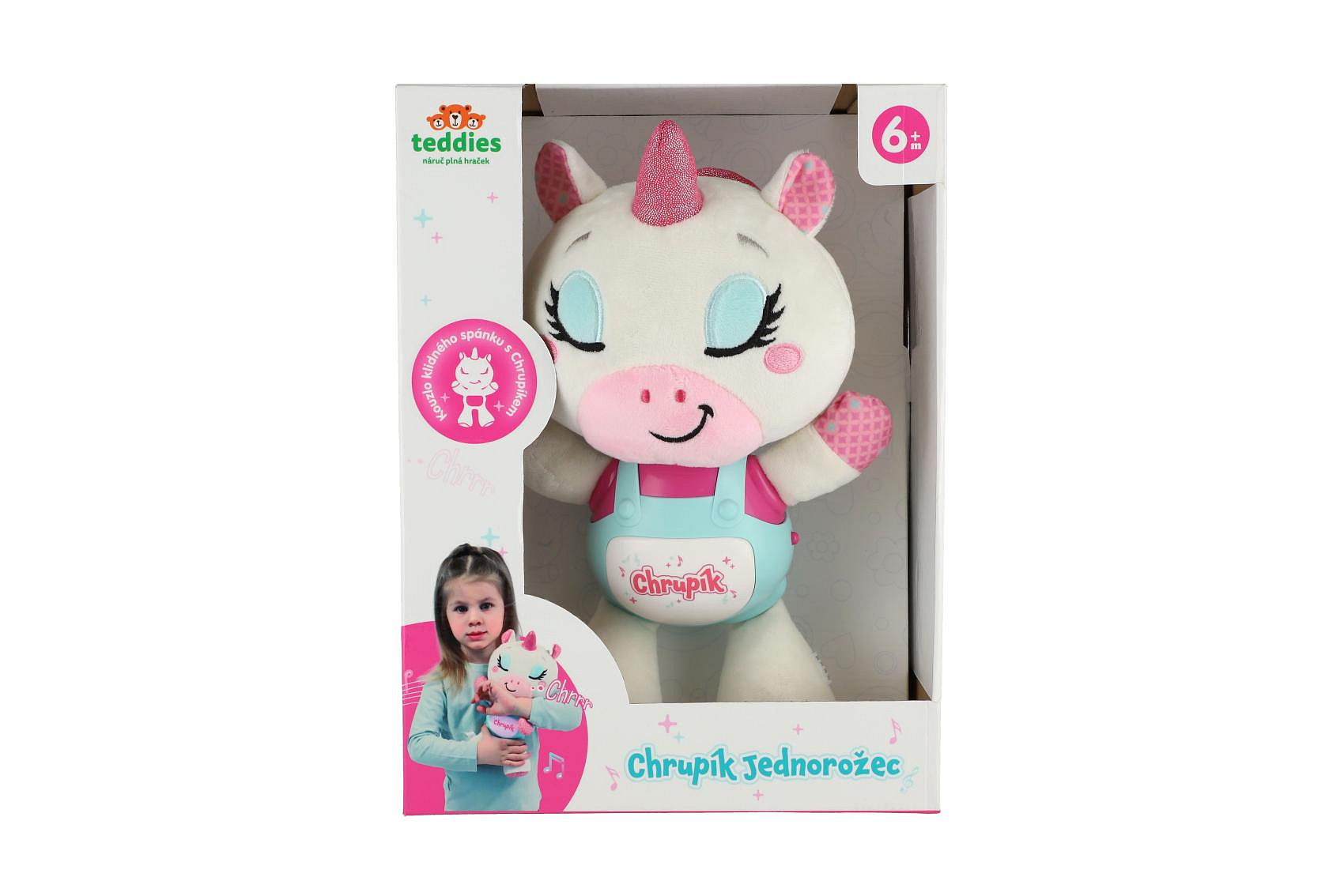 Jednorožec Chrupík usínáček plyš/plast na baterie se zvukem se světlem v krabici 22x30x10,5cm 6m+