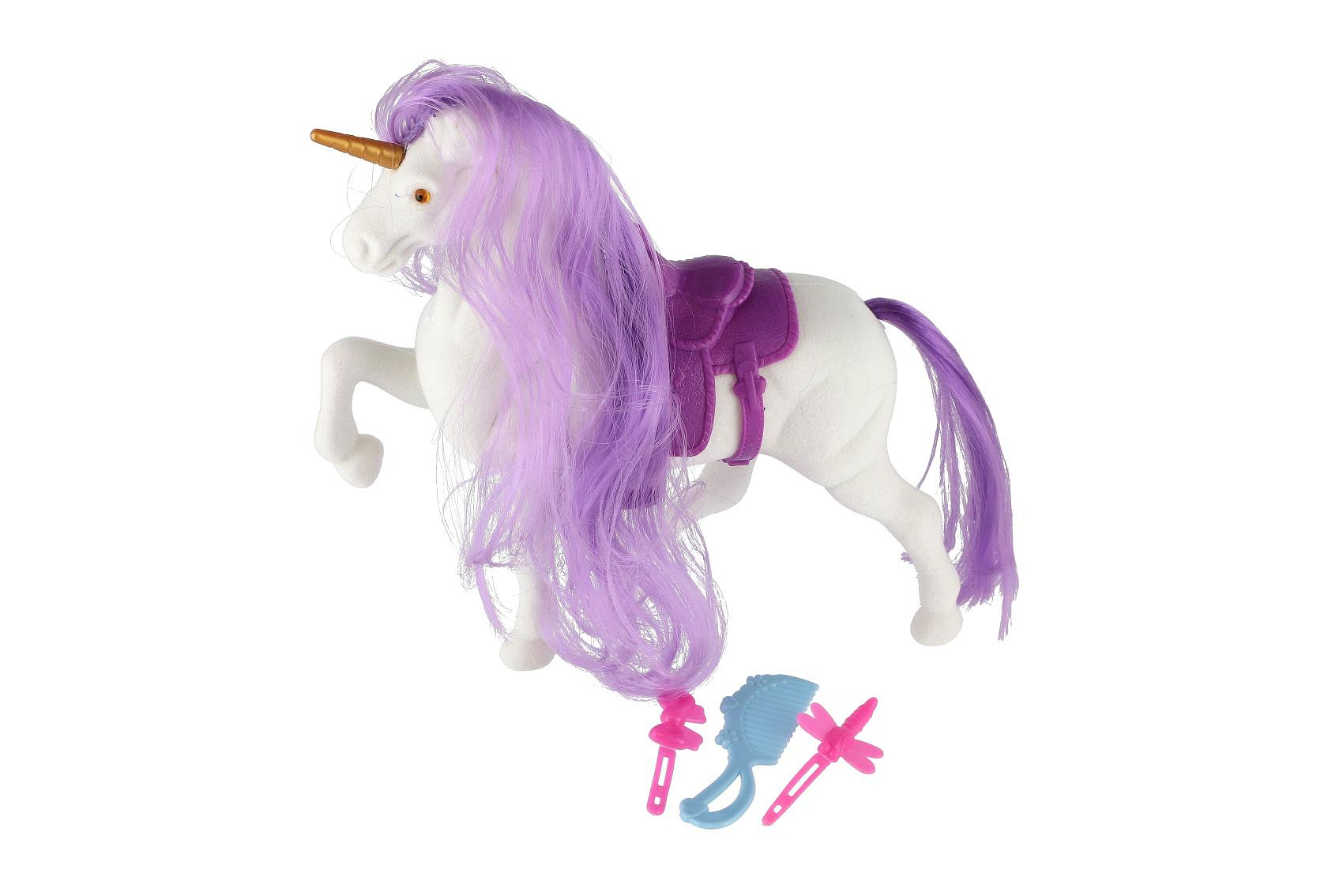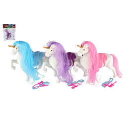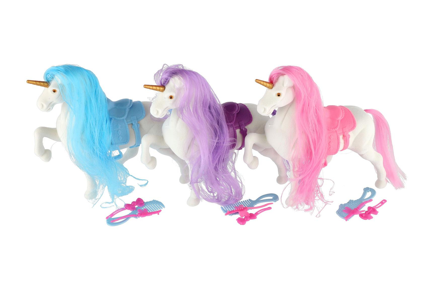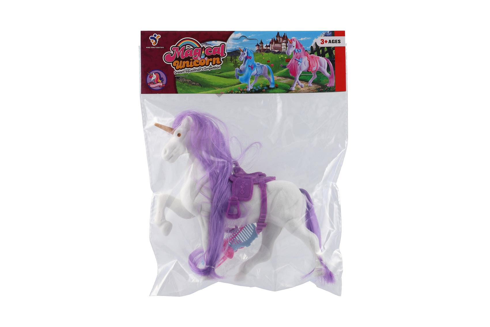 Jednorožec/kůň česací plast se sedlem s doplňky 3 barvy v sáčku 21x25x6cm